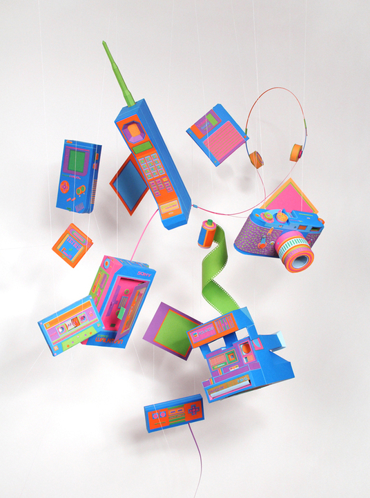 หลายคงยังจำอุปกรณ์ เครื่องใช้เหล่านี้ได้กันใช่ไหม? ด้วยมุมมองของ Lucie Thomas และ Thibault Zimmermann ในนามของ Zim & Zou studio ดีไซน์เนอร์นักออกแบบชาวฝรั่งเศส หนึ่งหนุ่ม หนึ่งสาว ได้นำความทรงจำเมื่อครั้งยังเด็กมาเล่าสู่กันฟังในรูปแบบของงาน Craft ประติมากรรม 3D ที่ทำมาจากกระดาษล้วนๆ และแถมยังมีสีสันสดใส สะดุดตา และน่ามอง พวกเขาทำให้เรานึกย้อนไปตอนที่เรายังเด็กได้ดีจริงๆ พวกเขาทั้ง ตัด แปะ ตกแต่ง และใส่ใจในทุกๆ รายละเอียด จนทุกอย่างออกมาดูเหมือนของจริงมากๆ ทั้งฟังก์ชั่น และขนาด มีทั้งกล้อง Polaroids, cassette tape, Sony walkman, floppy disc, เกมส์บอย กระทั่ง โทรศัพท์มือถือรุ่นกระดูกหมา และอีกมากมาย … ลองติดตามงานน่ารักสดใส ของพวกเขาเพิ่มเติมได้ที่นี่ http://www.zimandzou.fr