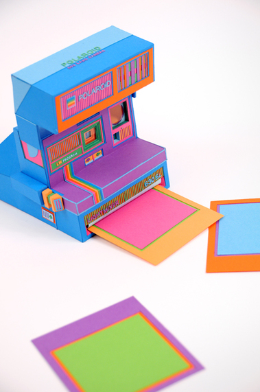 We’ re adopting the Zim & Zou crew’ s ‘Back to Basics’ credo. Zim & Zou are Lucie Thomas and Thibault Zimmerman, a team of young artists from Nancy, France who are giving their own flavour to iconic objects from the 80s. Cutting, folding, and trimming, the two recreate the Polaroids and old phones that suffuse our dreams. As ‘complementary and versatile’ partners, they play with measured design and a rainbow palette to create paper sculptures, dizzying installations and fantastic illustrations. Their craftsmanship highlights their unparallelled precision and dynamism. Like a trip through time in a Delorean, Lucie and Thibault bring us back to our childhood basics.