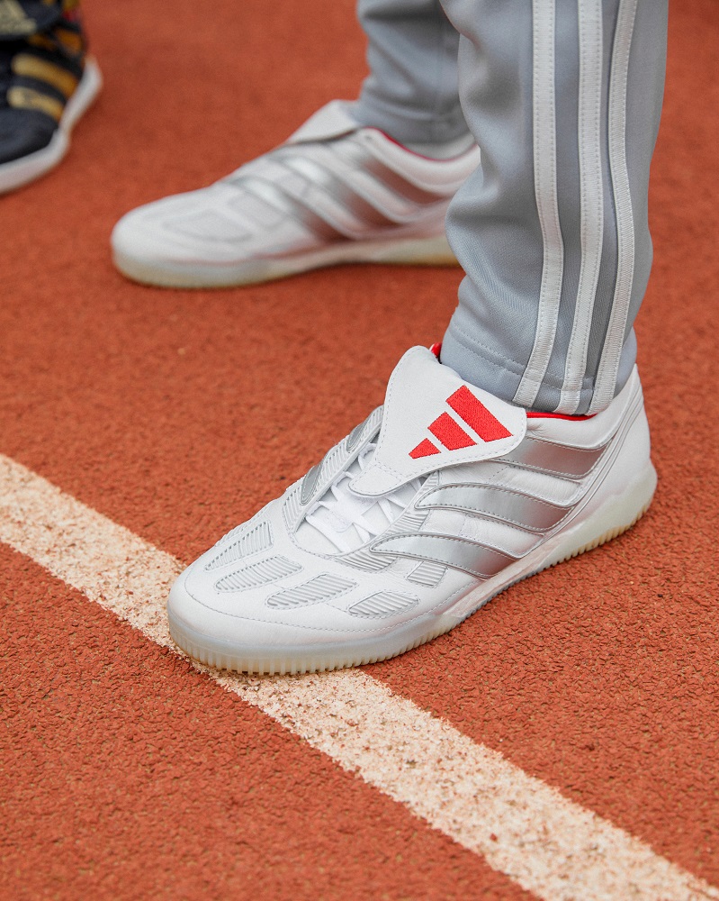 ขณะที่รองเท้าฟุตบอลรุ่นพิเศษของเบ็คแฮมก็คือ พรีเดเตอร์ พรีซิชั่น ซึ่งเป็นรองเท้าฟุตบอลที่เขาเคยใส่ลงสนามแข่งขันเมื่อปี 2001 นั่นเอง โดยที่ตัวรองเท้านั้นมีการใช้วัสดุหนังจิงโจ้เช่นเดียวกัน แต่ว่าจะมีการปรับเปลี่ยนเป็นสีขาวล้วนและแต่งเติมสีบริเวณลิ้นรองเท้าด้วยสีแดงที่ตัดกันอย่างสมบูรณ์แบบ สำหรับคอลเลคชั่นพิเศษของเบ็คแฮมนั้นก็จะมีเชือกสีขาวและสีแดงแถมมาให้อีกด้วย