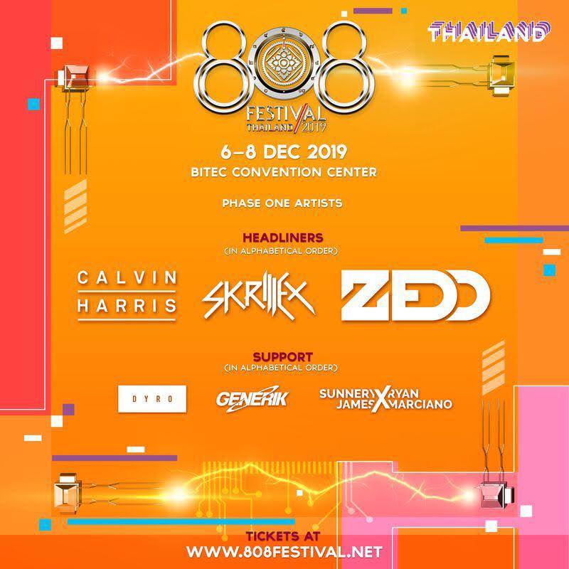 กลับมาแล้ว สำหรับสุดยอดงานเทศกาลดนตรี EDM แห่งปี ที่ทุกคนเฝ้ารอ!! 808 Festival 2019 เฟสติวัล ที่การันตีโดย โปรโมเตอร์สายแข็งอย่าง Retox Sessions โปรโมเตอร์ ปาร์ตี้ ดนตรีอิเล็กทรอนิกส์ ชั้นนำของเมืองไทย โดยปีนี้ มีความภูมิใจที่จะประกาศรายชื่อ สุดยอดศิลปินระดับโลก เพียงแค่ Phase แรก ก็สร้างความฮือฮาให้ชาว EDM ได้กรี๊ดไม่หยุด เมื่อเผย Line Up แรงสุดๆ นำทีมโดย Calvin Harris , Skrillex , ZEDD โดยในปีนี้จะจัดขึ้นถึง 3 วัน ใน วันที่ 6-8 ธันวาคม นี้ ณ ไบเทค บางนา