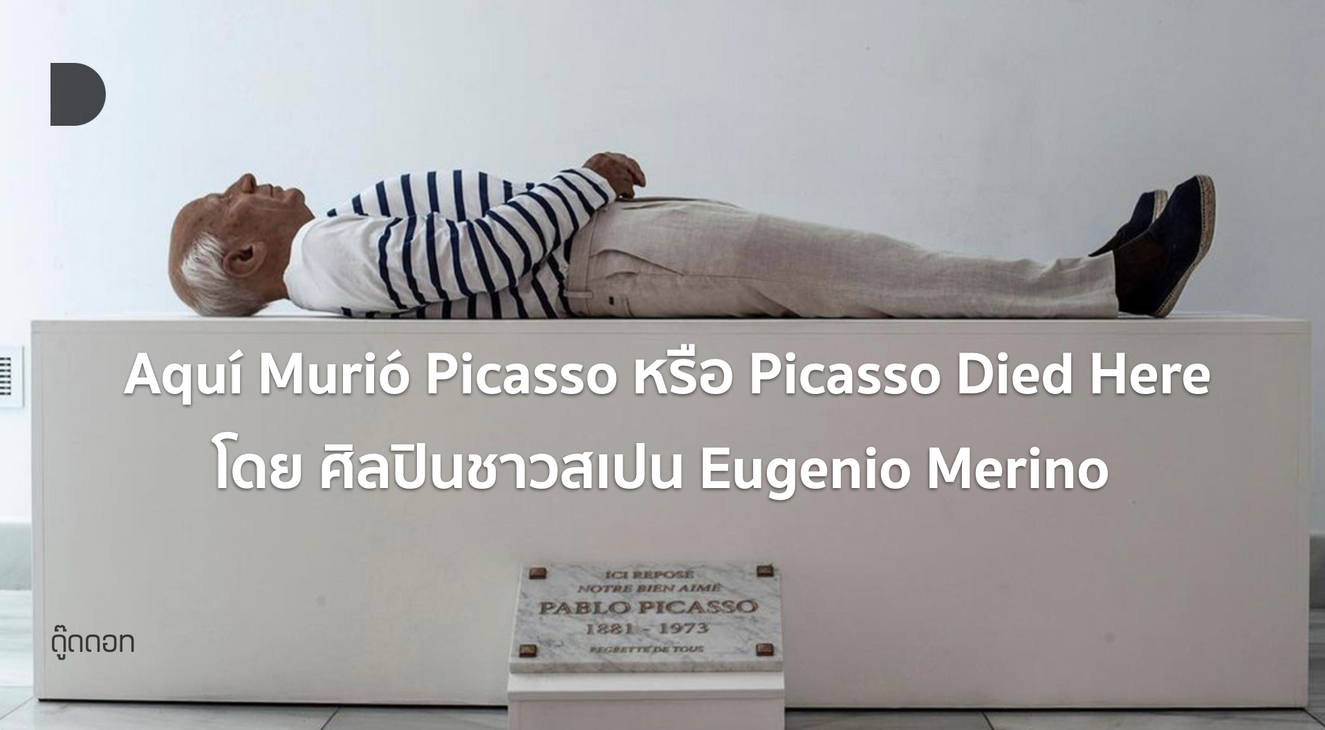 นี่คืองานประติมากรรมร่างกายของ Pablo Picasso สร้างสรรค์โดยศิลปินชาวสเปน Eugenio Merino ร่วมกับ Los Interventores และ ADN Gallery ที่ออกมาในปี 2017 Aquí Murió Picasso หรือ Picasso Died Here นำเสนอศิลปินที่ยิ่งใหญ่กว่าชีวิต ที่วางอยู่บนแท่นในเสื้อเชิ้ต Breton และกางเกงลินินอันเป็นเอกลักษณ์ของเขา