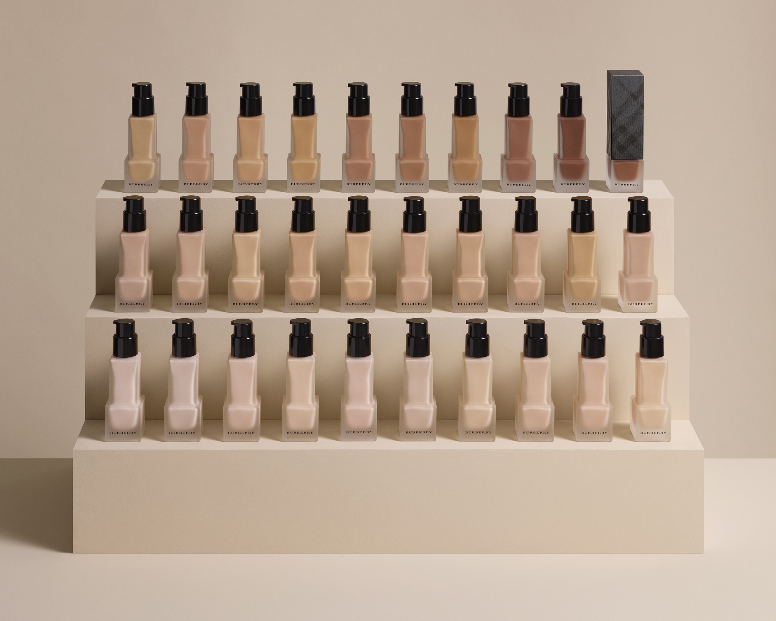 เฉดสีอันหลากหลายของรองพื้นรุ่น Matte Glow ของ Burberry นั้น ได้รับแรงบันดาลใจในการตั้งชื่อด้วย Professional Makeup Naming System ระบบในการตั้งชื่อเฉดสีรองพื้นที่ได้รับความนิยมในขณะนี้ โดยแต่ละสีของรองพื้นนั้นถูกไล่เรียงจากเฉดสี Fair ถึง Dark เพื่อความง่ายและแม่นยำในการเลือกสีรองพื้นที่เหมาะกับโทนผิวอย่างที่สุด