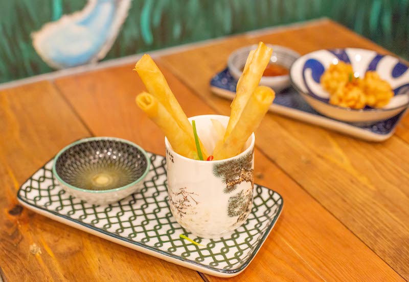 ส่วนที่เหลือในหมวดอาหารคาว จะเป็นติ่มซำ ซึ่งก็เช่นกัน มาใน Portion กำลังดี น่าเอ็นดู ไม่เยอะจนกินไม่หมด เราลองสั่งมาครบทุกสิ่ง อันได้แก่ กุ้งระเบิดกรอบๆ ราดน้ำจิ้มหวานเหมือนที่กินตอนเด็กๆ ไก่ทอดซอสมาล่า ป่อเปี๊ยะกุ้ง เกี๊ยวกุ้งน้ำ ขนมจีบหมูที่เนื้อหมูแน่นกับแป้งบาง