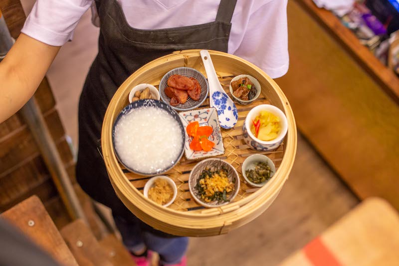 ชื่อว่าเป็นคาเฟ่สไตล์จีน ที่นี่เลยไม่ได้มีแค่เครื่องดื่มกับขนมดาษดื่น แต่มีอาหารจีนจริงจัง ซึ่งเรารู้สึกว่ากินง่าย รสชาติไม่เลว และที่ชอบมากคือเขาใส่ความร่วมสมัยลงไปให้เป็น Comfort Food ง่ายๆ อารมณ์เหมือนไปกินข้าวบ้านอาม่า แต่นำเสนอให้เข้ากับคนยุค 2018 มากขึ้น เช่นวันนี้ที่เราลองสั่งเซ็ตข้าวต้ม ที่มาพร้อมกับข้าวหลายสิ่ง มีกานาฉ่าย ไชโป๊วดอง ใบปอ กุนเชียง ไข่เเดงเค็ม หมูหยอง ถั่วกับเห็ดหอม โดยกับข้างจะไม่เหมือนกันในแต่ละวัน เสิร์ฟมาในถ้วยจิ๋วยิ่งทำให้น่าเอ็นดู อยากชิมโน่นลองนี่ไปซะหมด นี่แหละชุดแฮปปี้มีลที่แท้ทรูสำหรับเรา!