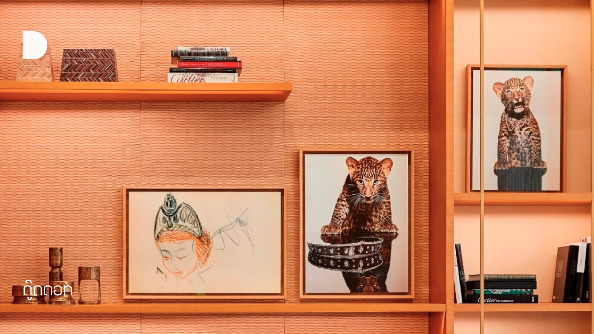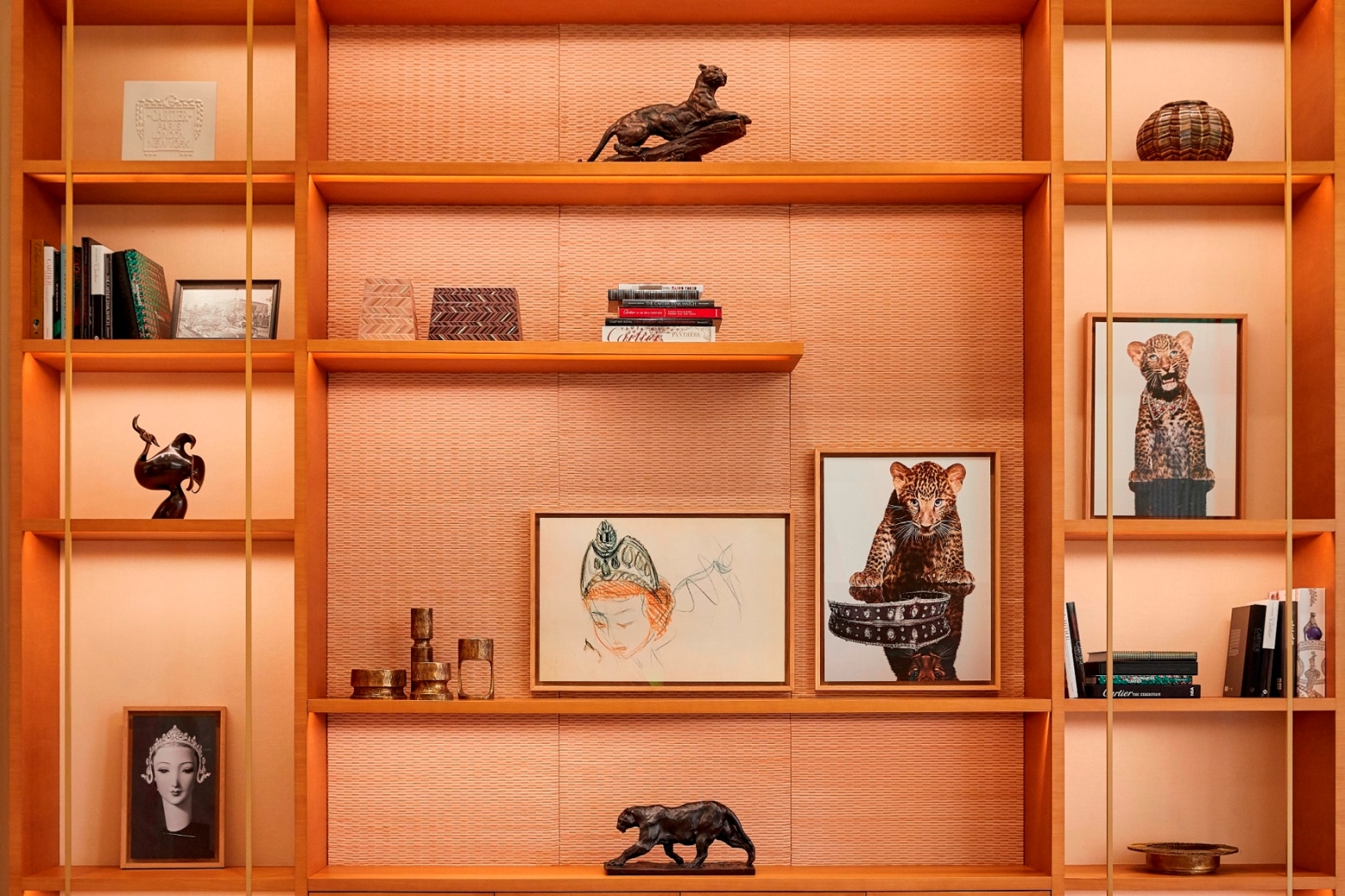 นอกจากการตกแต่งที่นำสถาปัตยกรรมไทยร่วมสมัยผสานกับสไตล์คลาสสิกของคาร์เทียร์แล้ว งานศิลปะและเครื่องตกแต่งในบูติคนี้ แต่ละชิ้นยังแฝงไปด้วยความหมายอันงดงาม ไม่ว่าจะเป็น ตู้หนังสือที่ได้รับแรงบันดาลใจมาจากตู้พระไตรปิฎกจากรัชสมัยของพระบาทสมเด็จพระจอมเกล้าเจ้าอยู่หัวและพระบาทสมเด็จพระจุลจอมเกล้าเจ้าอยู่หัว ซึ่งถือเป็นยุคแห่งการนำพาประเทศไทยสู่ความทันสมัย มีการส่งพระราชโอรสและพระราชธิดาไปศึกษาต่อในยุโรป ตลอดจนเดินหน้าสานสัมพันธไมตรีอันแน่นแฟ้นกับประเทศในแถบยุโรปอีกด้วย ตู้หนังสือนี้จึงสะท้อนถึงการศึกษาเพื่อพัฒนาประเทศและกระแสความเปลี่ยนแปลงที่เข้าสู่ราชอาณาจักรไทยในสมัยนั้น ตลอดจนอิทธิพลต่างๆ ที่มีผลต่อในประเทศไทยในปัจจุบัน แจกันที่ทำจากลูกปัดโบราณหรือเครื่องทองเหลืองประดับที่มีพื้นผิวทองขยุ้มเหมือนแผ่นทองคำเปลว ที่ชาวพุทธบรรจงติดลงบนผิวโลหะของพระพุทธรูป รูปปั้นที่แลดูคล้ายกับช่อฟ้า โคมไฟที่สวยงามด้วยเทคนิคกระจกตัด หรือการจำลองราวบันไดลูกกลึงสมัยโบราณ ไปจนถึงโคมไฟแชนดาเลียรูปดอกบัว ประตูโค้งที่ได้รับแรงบันดาลใจมาจากวัดวาอาราม ไปจนถึงเครื่องเรือนที่บุด้วยผ้าไหมไทยไม่ว่าจะเป็นผนังหรือโซฟา