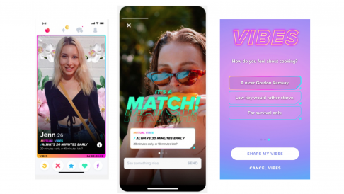 ไวบ์ (Vibes) คือ ความรู้สึกดีๆ ต่อใครสักคน เมื่อได้พบโปรไฟล์คนที่ถูกใจที่บอกว่าเป็นชาวราศีแมงป่อง หรือการวางแผนที่จะฉีดวัคซีน ซึ่งในปี 2563 ทินเดอร์พบว่าคนเจน Z แสดงตัวตนของพวกเขาออกมาเต็มที่อย่างไม่มีปิดบัง