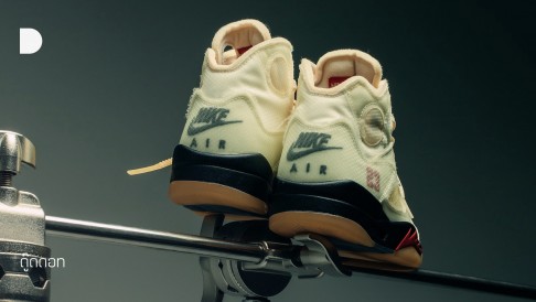 ล่าสุด ออฟไวท์เปิดตัวรองเท้า ‘Off-White™ c/o Nike Air Jordan 5 Retro’ ด้วยสีใหม่ล่าสุดอย่างสี Sail โดยเวอร์จิล แอบโลห์ (Virgil Abloh) ผู้ยังคงทำหน้าที่เป็นดีไซน์เนอร์และผู้อํานวยการสร้างสรรค์ของแบรนด์ ได้นำโมเดลของรองเท้าจอร์แดน 5 ทรงคลาสสิกมาปรับรายละเอียดใหม่ ด้วยลิ้นรองเท้าสีเงินสะท้อนแสง รวมถึงเอกลักษณ์สำคัญของรองเท้าจอร์แดน 5 อย่างลวดลาย ‘Fire Red’ บริเวณส้นและเลข 23 ซึ่งเป็นเลขซิกเนเจอร์ของไมเคิล จอร์แดน (Michael Jordan)