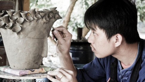 ไกลออกไปจากตัวเมืองเชียงใหม่ เราเดินทางไปที่บ้านหลังหนึ่งในเมืองแม่โจ้ พบกับสตูดิโอเล็กๆ บรรยากาศน่ารักๆ ที่เต็มไปด้วยรูปปั้น เครื่องปั้นดินเผาคนเรียงรายเต็มไปหมด