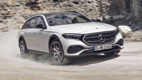 All-Terrain E-Class นั้นสื่อว่าสามารถไปได้ในทุกเส้นทาง ไม่ว่าจะถนนทั่วไป หรือ ถนนออฟโรด ลักษณะการออกแบบที่โดดเด่น กระจังหน้าแบบบานเกล็ดคู่ ประดับด้วย Mercedes-Benz Star ตรงกลาง และประดับด้วยสีเงิน Iridium Silver ตัดด้วยดีเทลโครเมียมแบบมินิมอล และลิ้นที่เหมือนเป็นแผงป้องกันใต้ท้องรถด้านหน้าและด้านหลัง ตอกย้ำคุณลักษณะแบบออฟโรดของรถ