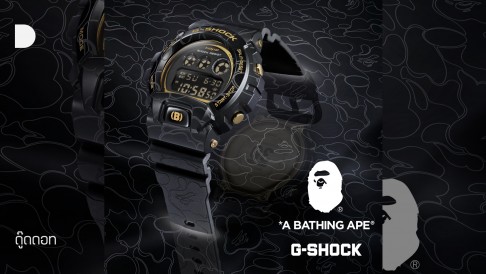 คอลเลคชั่นพิเศษนี้มาในรุ่น GM-6900 ดีไซน์ลาย BAPE® CAMOUFLAGE บนตัวเรือนและสาย ฝาหลังสลักโลโก้ “ลิง BAPE” และตัวเลข 30 ที่ระบุถึงปีครบรอบ เพิ่มความพิเศษด้วยปุ่มกลางที่เป็นตัวอักษร "B" โดยมาจากคำว่า BAPE® มาในกล่องเหล็กดีไซน์พิเศษสุดพรีเมียม พร้อม Accessory สายผ้า Canvas ลาย BAPE® CAMO ที่เป็นเอกลักษณ์ของ A BATHING APE ด้วย ราคาเพียง 12,000 บาท