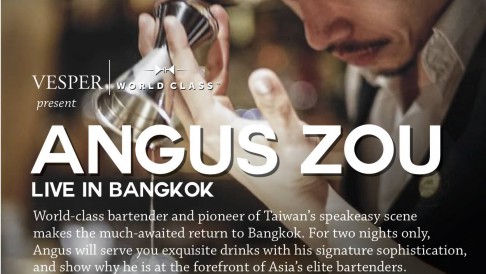 Vesper & Diageo World Class present World Class bartender Angus Zou from Taipei : Angus Zou หนึ่งในผู้นำบาร์เทนเดอร์ ของทวีปเอเซีย เจ้าของร้าน Alchemy ร้านสไตล์ speakeasy ร้านแรกของไทเป