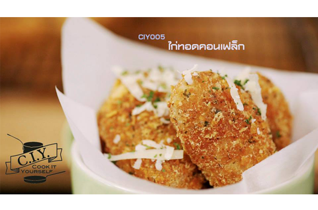 วันนี้ผมอยากแนะนำเมนู ไก่ทอดคอนเฟล็กครับ แต่อยากแนะนำให้รู้จักกับผู้ชายคนนึงก่อน คุณ น่าน หงษ์วิวัฒน์ ผู้ที่จะมาสอนเราทำอาหารแบบง่ายๆ ใน concept C.I.Y. หรือ Cook it yourself นั้นเองครับ เป็นรายการสอนทำอาหารที่ภาพสวยมาก ทำให้ยิ่งเพิ่มจำนวนและความถี่จากหยดน้ำบ่อน้อย(เรียกว่าน้ำลายเลยละกัน)ของเราเป็น 2 เท่าเลยทีเดียว เมนูที่ผมยกมาบอกเล่ากันวันนี้คือ ไก่ทอดคอนเฟล็ค (บอกหลายรอบละ) มาลองชมกันเลยดีกว่าครับ ว่าเป็นการทำอาหารแบบง่ายๆจริงมั๊ย