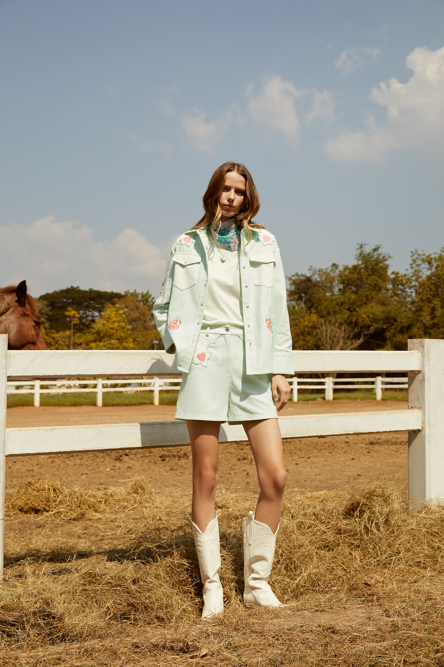 “เมื่อเอ่ยถึงเมืองอาริโซน่า ออมคิดถึงเสน่ห์ความเท่ของการแต่งตัวสไตล์คาวบอย คาวเกิร์ล เสื้อเชิ้ตลวดลายแปลกตา สวมทับเสื้อกั๊กหนัง ผ้าพันคอ Bandanas เข็มขัด ซองปืน ขี่ม้ากลางทะเลทราย ชุดนูดดี้สูท (nudie suite) สู่แรงบันดาลใจในการรังสรรค์คอลเลกชั่นใหม่ที่นำเสน่ห์ความเท่ของดินแดนตะวันตกของอเมริกามาผสานกับซิกเนเจอร์ของแบรนด์ เทคนิคการปัก ผ้าปักฉลุ ลูกไม้ การออกแบบลายผ้าใหม่ แต่ยังคงกลิ่นอายความเป็นดินแดนตะวันตกของอเมริกาไว้ ในขณะเดียวกันดีไซน์เน้นความสง่างามของผู้หญิงยุคใหม่ เนื้อผ้าที่พลิ้วไหวสามารถสวมใส่ในชีวิตประจำวันในทุกโอกาส” ออม-ดิษยา สรไกรกิติกูล ครีเอทีฟไดเร็คเตอร์ กล่าว