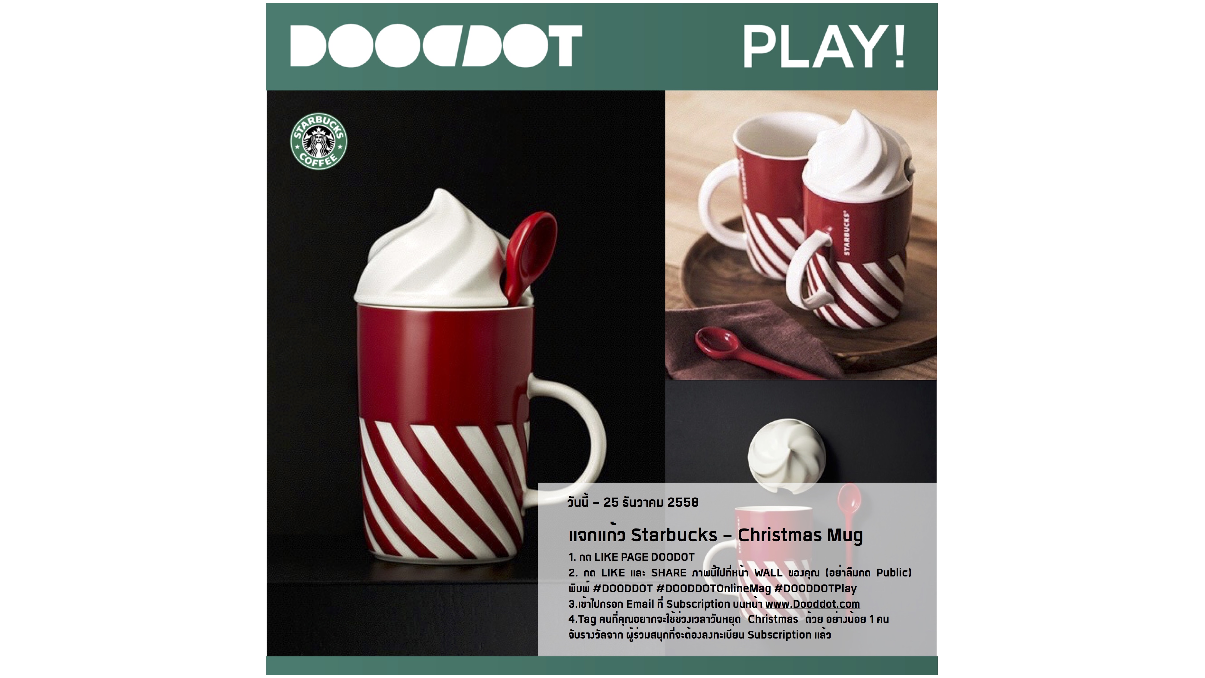 DOODDOT PLAY : แจกแก้วกาแฟ STARBUCKS Candy Cane Whip mug 12oz 5 รางวัล