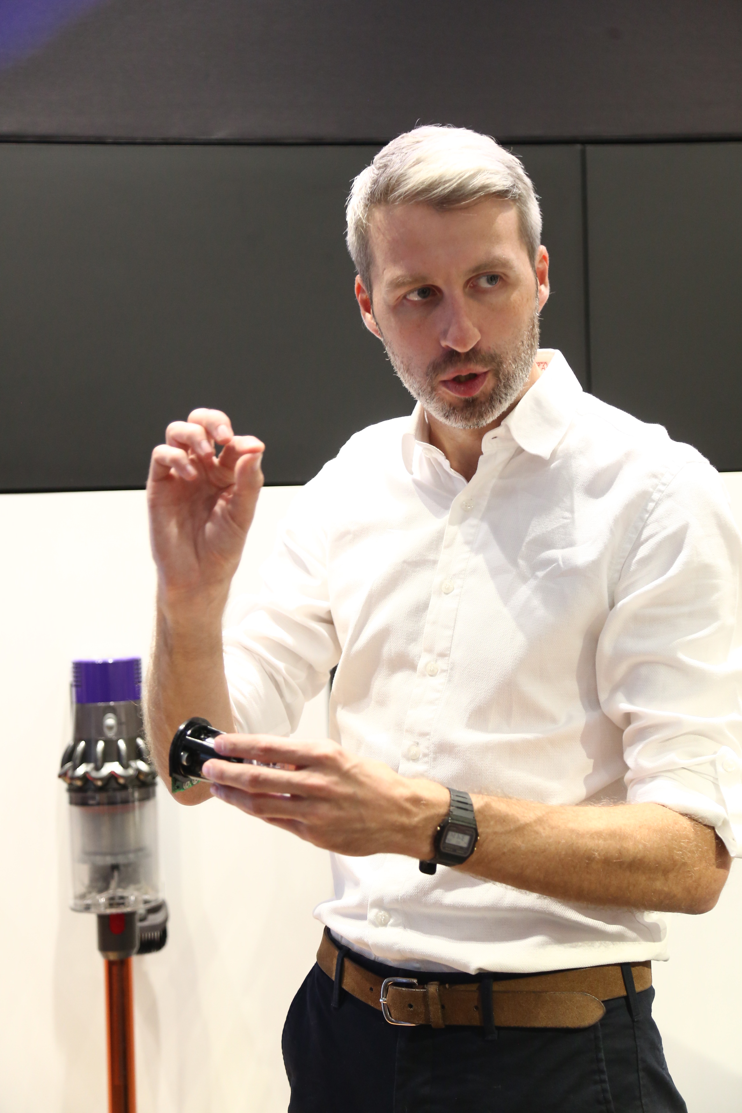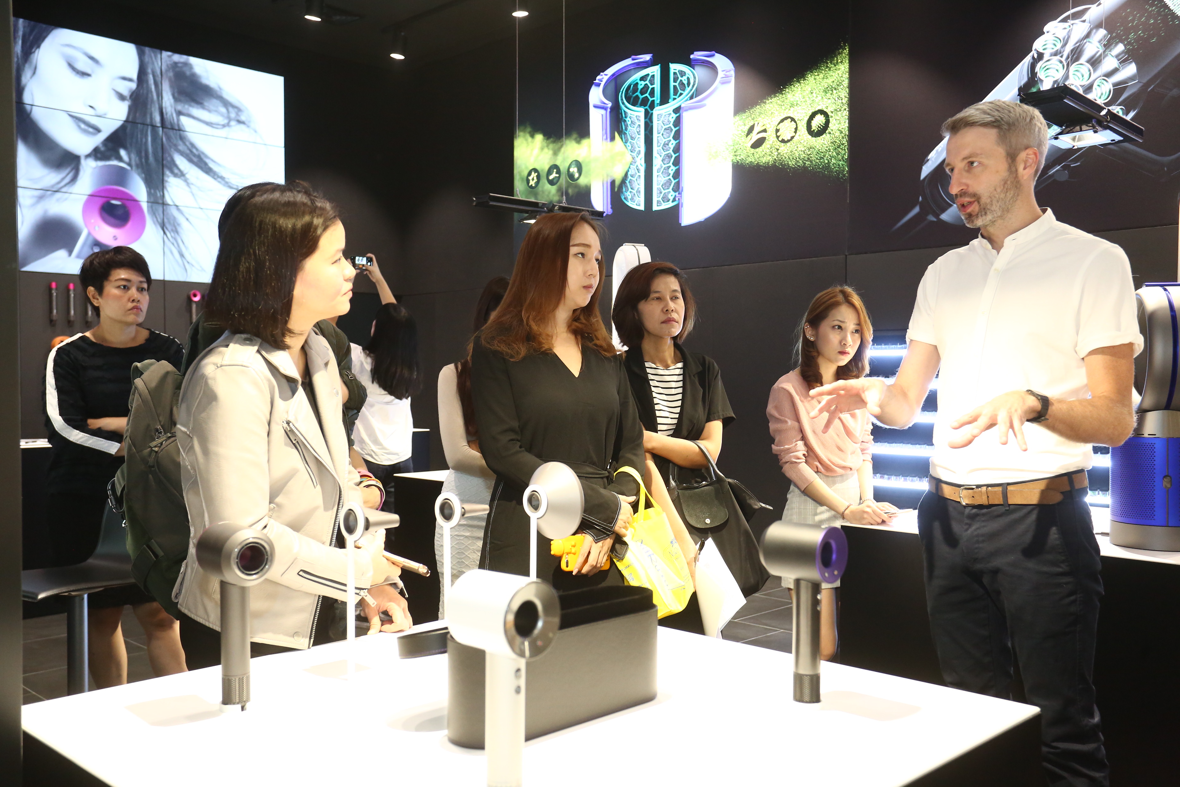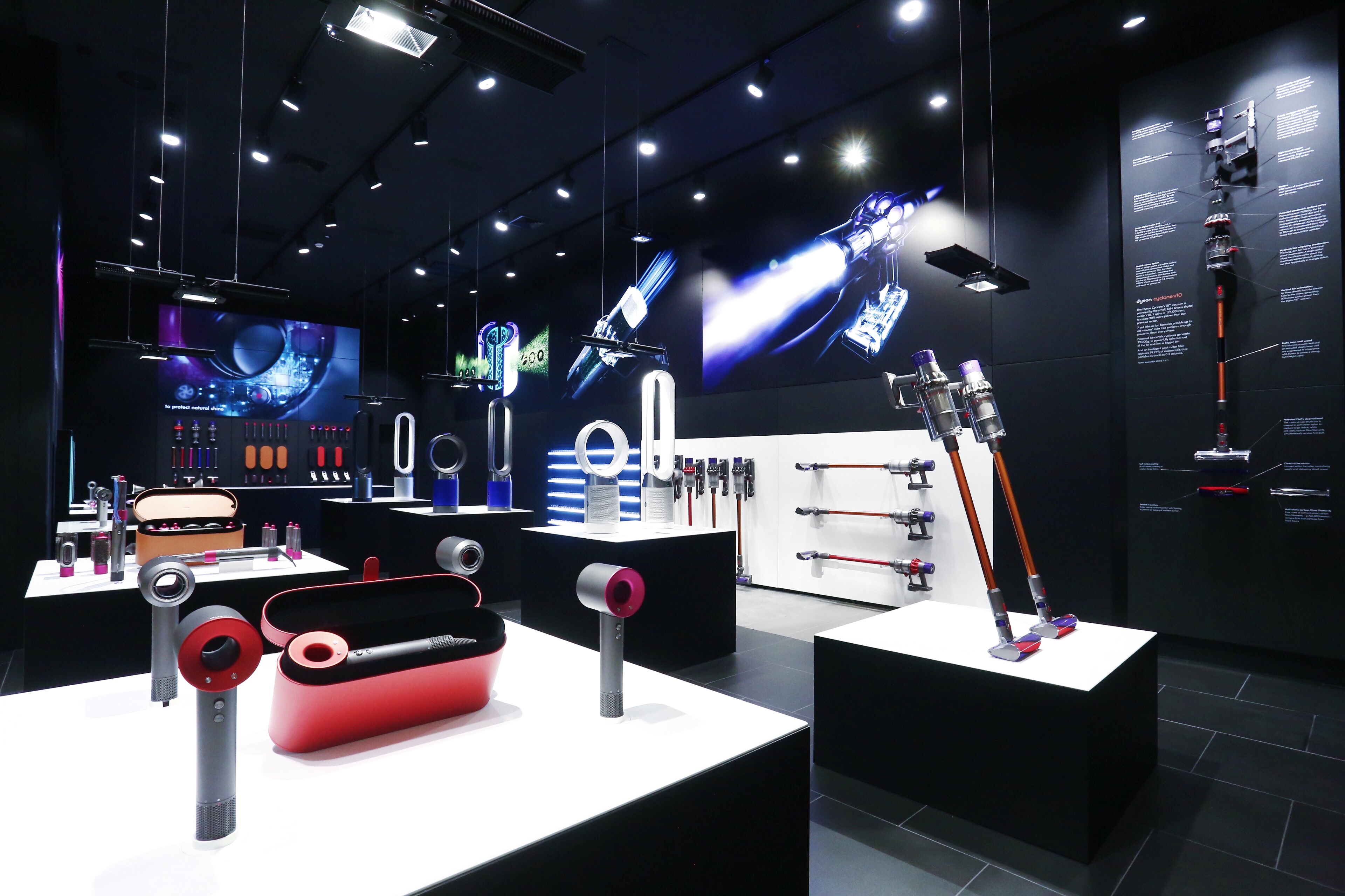 มร. แกรม แมคเฟอร์สัน (หัวหน้าฝ่ายวิจัยและพัฒนาผลิตภัณฑ์) กล่าวว่า: “การให้ลูกค้าได้เข้ามาทดลอง และสัมผัสกับผลิตภัณฑ์เทคโนโลยีของเรานั้นเป็นสิ่งสำคัญ เพราะมันจะทำให้พวกเขาได้เข้าใจถึงวิธีการทำงานของผลิตภัณฑ์เทคโนโลยีต่างๆ และนี่จึงเป็นเหตุทำให้เราได้ออกแบบพื้นที่แห่งนี้ขึ้นไว้ใช้ ยกตัวอย่างเช่น ลูกค้าจะสามารถทดลองใช้เครื่องดูดฝุ่นไร้สายได้อย่างละเอียด โดยจะได้ทดลองใช้ดูดฝุ่นบนพื้นที่ใช้ทดสอบ และสามารถทดสอบดูดฝุ่นตัวอย่างชนิดต่างๆได้จริง”