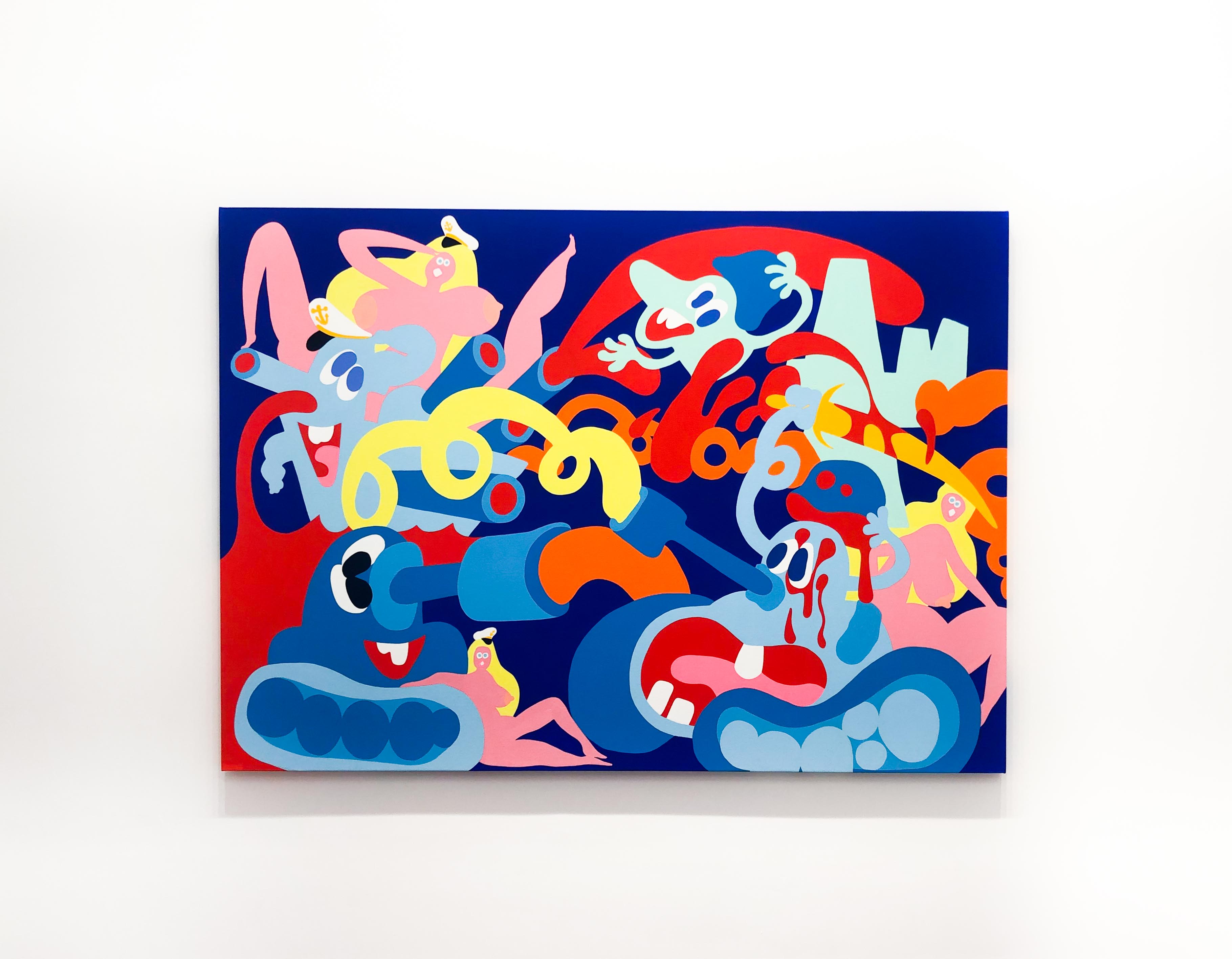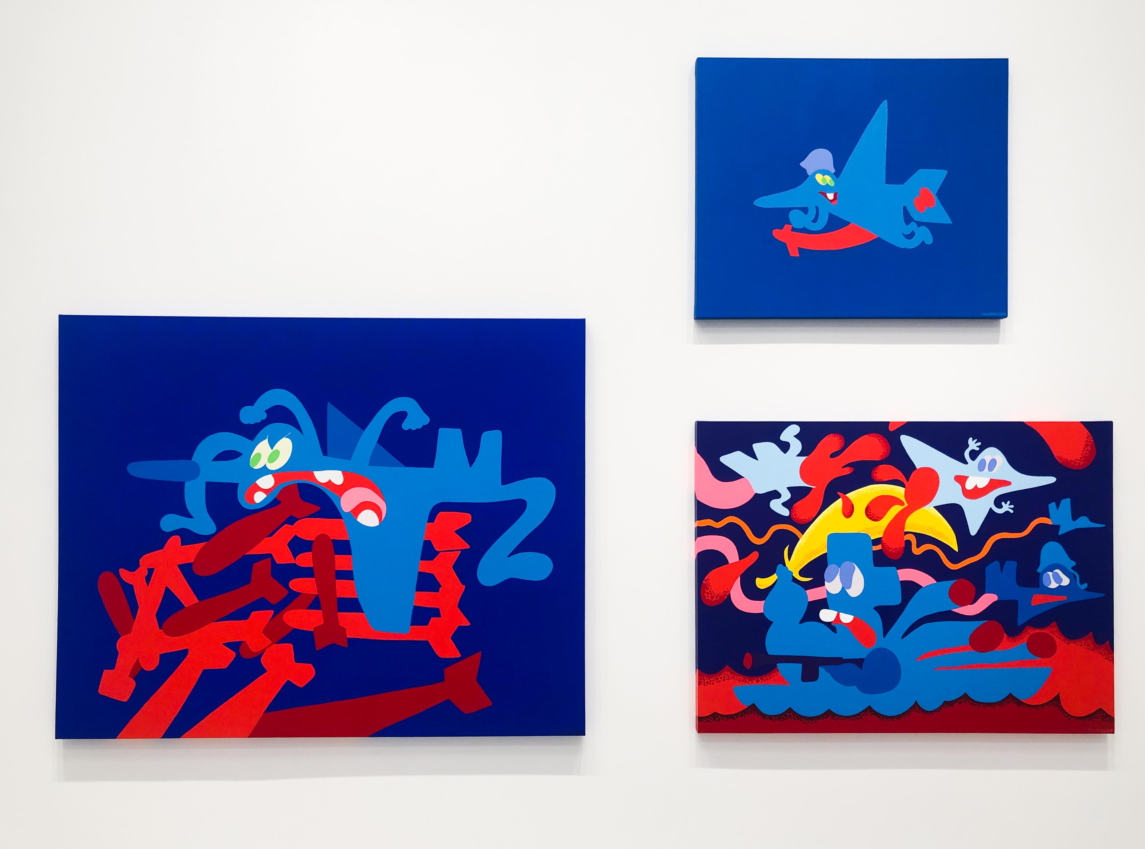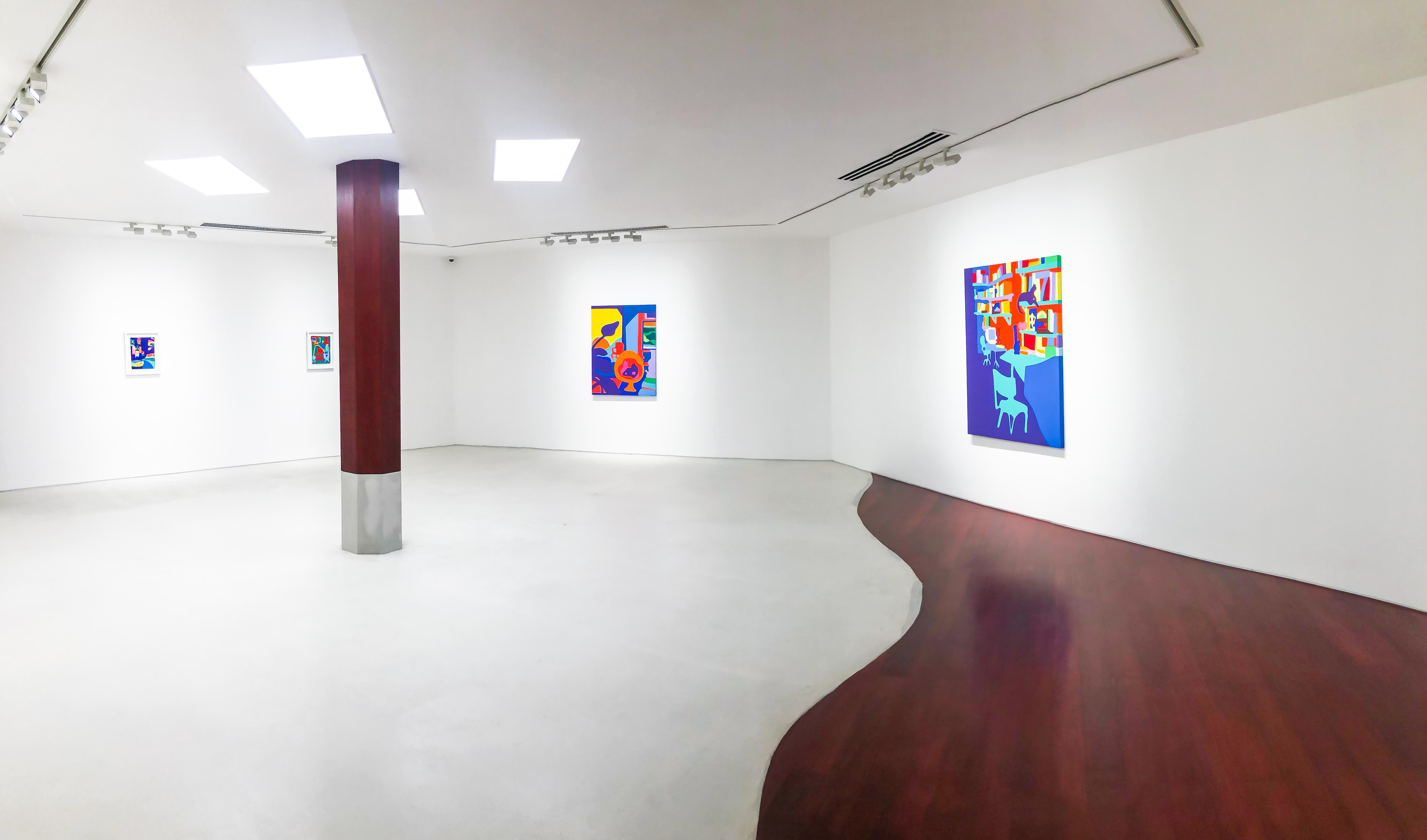 การจัดแสดงผลงานชุด CLEAN JELLYBEAN ครอบคลุมพื้นที่ทุกชั้นของหอศิลป์ ทั้งยังสอดคล้องไปกับสถาปัตยกรรมและการออกแบบภายใน โดยในแต่ละชั้นได้นำเสนอธีมหลักต่างๆ ที่ถ่ายทอดผ่านการใช้ชุดสีที่จัดจ้าน อาทิ การตกแต่งภายในแบบเหนือจริง ฉากภูมิรัฐศาสตร์ และภาพทีเผลอหรือภาพแคนดิดของผู้หญิง ภาพวาดชุด CLEAN JELLYBEAN สะท้อนแนวคิดของสงครามที่ไม่มีที่สิ้นสุด ด้วยการผสมผสานกันขององค์ประกอบต่างๆ อย่างทรงพลัง ได้แก่ รถถังการ์ตูน พลซุ่มยิง และรูปร่างเงาดำของคน โดยภายในภาพจะเห็นวัตถุ พื้นดิน และพื้นที่ที่ได้หลอมรวมกัน แต่ทว่ายังคงโดดเด่น คมชัด และมีชีวิตชีวา