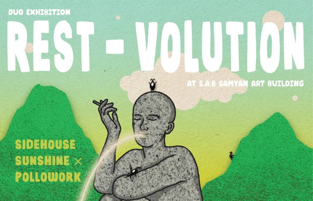 #Exhibition : “REST~VOLUTION” Duo Exhibition by “POLLOWORK & SIDEHOUSE SUNSHINE” Curated by Kontorn Satjeekul แสดงความหมายถึงการปฏิวัติการพักผ่อน การกระทำอันทรงพลังที่แสดงถึงการฟื้นฟูร่างกายและจิตใจเพื่อเตรียมพร้อมกลับไปสู่สมรภูมิแห่งการใช้ชีวิตได้อีกครั้ง