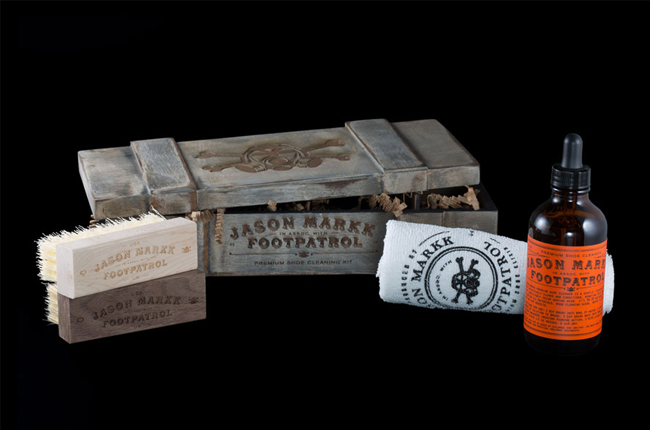 Jason Markk ออกชุดน้ำยาทำความสะอาดรองเท้ารุ่นพิเศษร่วมกับ Footpatrol แบรนด์จากอังกฤษ ภายในชุดประกอบไปด้วย น้ำยาทำความสะอาดขนาด 4 oz. บรรจุในขวดคล้ายขวดยาพิษโบราณ แปรงขัดสลักชื่อแบรนด์ ผ้าไมโครไฟเบอร์ พวงกุญแจเล็กๆ ทำจากไม้เป็นรูปมาสคอตของ Jason Markk และกล่องไม้สุดคลาสสิค เซตนี้มีจำนวนจำกัดเพียง 1,000 ชุดเท่านั้น