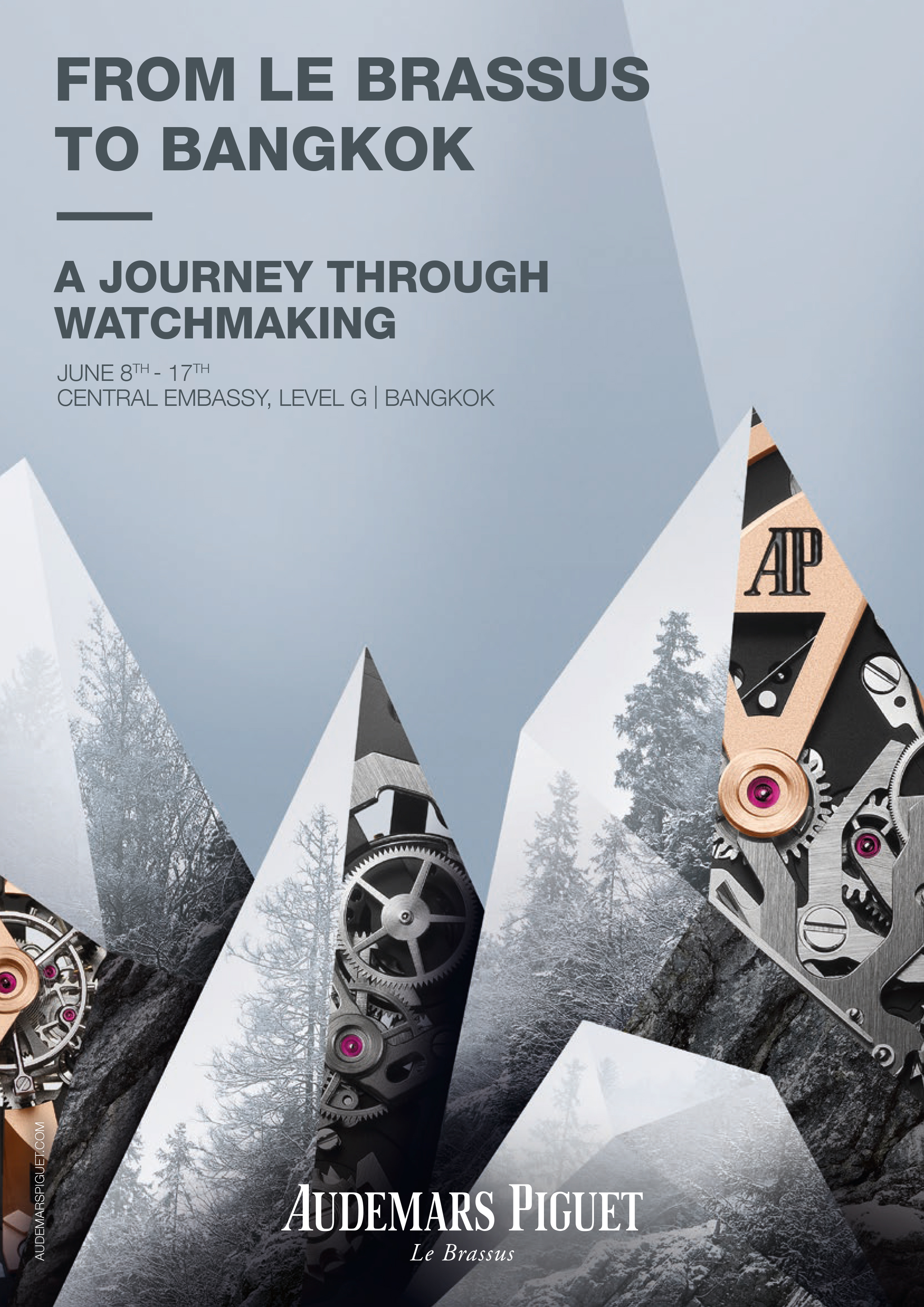 8 ถึง 17 มิถุนายน 2561 ที่จะถึงนี้ โอเดอมาร์ ปิเกต์ สุดยอดแบรนด์เครื่องบอกเวลาชั้นสูงจากประเทศสวิตเซอร์แลนด์ เตรียมส่งตรงความล้ำค่าระดับตำนานสู่ภูมิภาคเอเชียตะวันออกเฉียงใต้ กับครั้งแรกของการเผยตัวตนและประวัติศาสตร์อันยาวนานผ่านนิทรรศการเรือนเวลาเต็มรูปแบบภายใต้ชื่อ “From Le Brassus to Bangkok” ณ ชั้น G ลานเอเทรี่ยม ศูนย์การค้าเซ็นทรัลเอ็มบาสซี