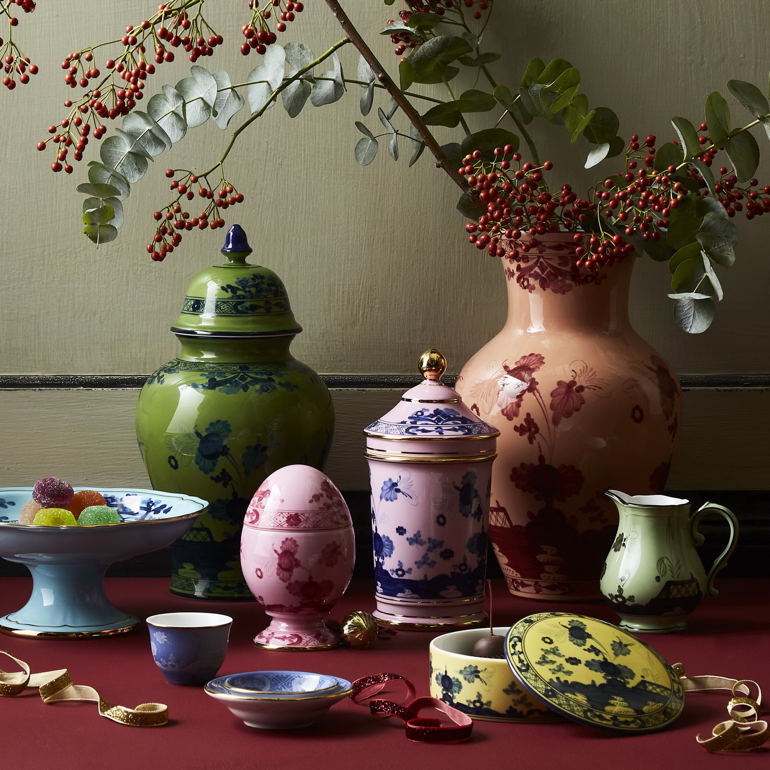 สำหรับคอลเลกชั่นแรกที่นำเข้ามา คือ Oriente Italiano (ออเรนเต้ อิตาเลียโน่) คอลเลกชั่นคลาสสิกตลอดกาลของแบรนด์ ได้นำเสน่ห์วัฒนธรรมตะวันออกมาผสานกับความสง่างามและอัตลักษณ์เครื่องลายครามจากอิตาลี รังสรรค์เป็นลายแมลงในช่อดอกไม้ได้อย่างงดงาม คอลเลกชั่นนี้ยังโดดเด่นด้วยโทนสีพาสเทลมีให้เลือก 10 เฉดสี ได้แก่ สีฟ้า, สีเขียว, สีเหลือง, สีชมพู, สีส้ม, สีแดง, สีม่วง, สีดำ, สีเทา และสีขาว ในหลากหลายดีไซน์ อาทิ ถ้วย, จานข้าว, จานบัว, จานเปล, ถ้วยซุป, ชามสลัด, เซตแก้วชา-กาแฟ ฯลฯ