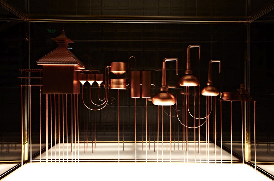 Peat and barley walls, a copper sculpture of the distillery process and an interactive blending table all add to the experience. Willow patterned porcelain whisky bottles, illustrated by London-based Chris Martin, also feature in the House. The decorative Chinese-style white and blue pictures tell the story of Johnnie Walker whisky’s epic journey from Scotland to China over a hundred years ago.