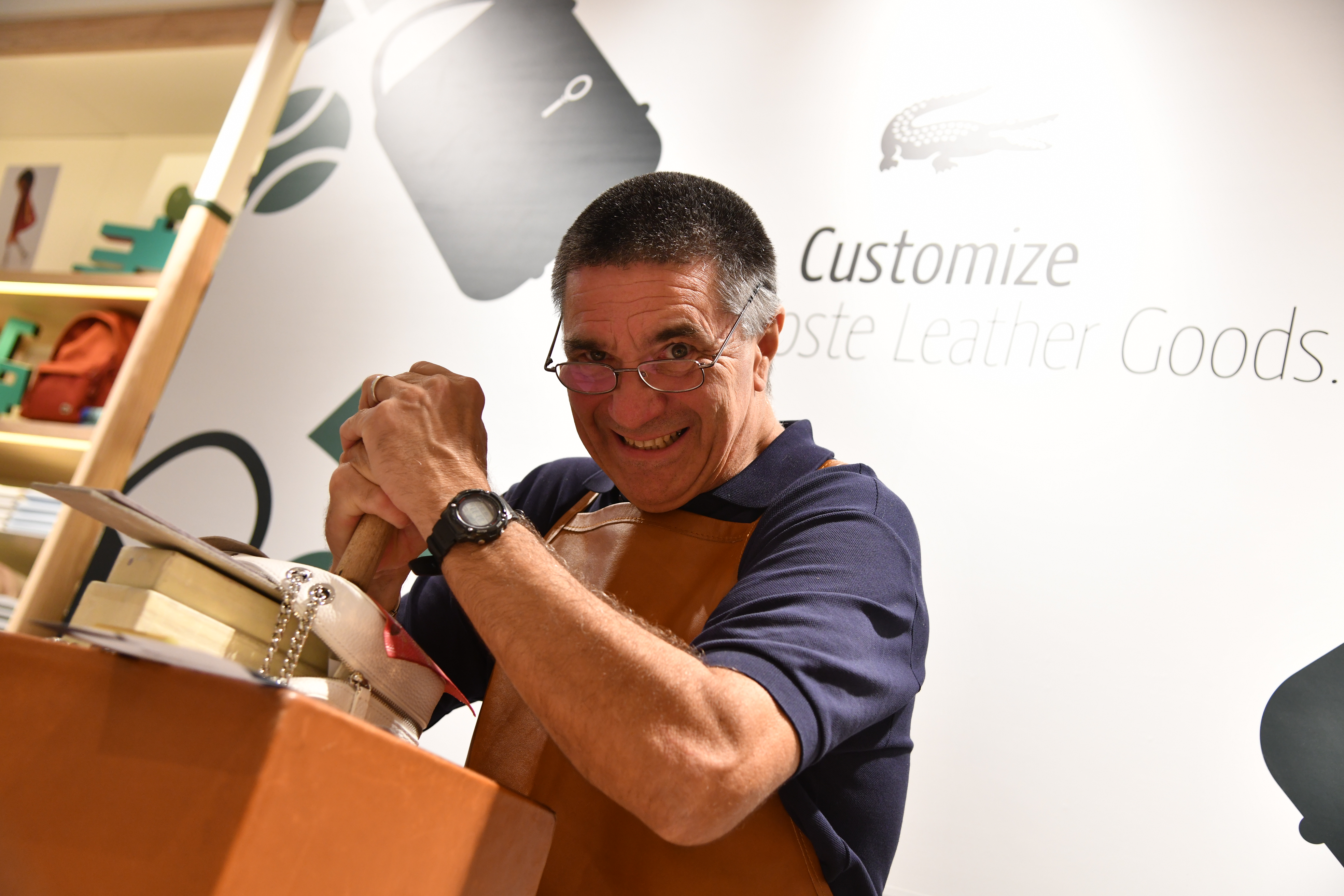 นอกจากนี้ ความพิเศษของงานเราได้รับเกียรติจากช่างหัตถศิลป์ชาวฝรั่งเศส Mr.Pascal Anger (พาสคาล อองเจร์) สุดยอดศิลปินงานหัตถศิลป์บินตรงมาจากประเทศฝรั่งเศส ซึ่งเป็นผู้ที่เคยสร้างความประทับใจในการสลักอักษรย่อลงบนกระเป๋าหนังลาคอสท์จากคอลเลคชั่นใหม่ Croco Crew Fall/Winter 2019 (ครอคโค่ ครูว์ ฟอล วินเทอร์2019) พร้อมสลักรูปหอไอเฟล ธงชาติฝรั่งเศส และลูกเทนนิส เพื่อเพิ่มคุณค่าให้กระเป๋าใบหรูแบบไม่ซ้ำใคร แบบลิมิเต็ดอิดิชั่น เอาใจสาวกแบรนด์ลาคอสท์เหมาะสำหรับเป็นของขวัญชิ้นพิเศษที่โดดเด่น และแน่นอนว่าเป็นการสร้างสรรค์พร้อมกับสะท้อนความเป็นคุณและคนที่คุณรักเพียงใบเดียวในโลกเท่านั้นครับ”