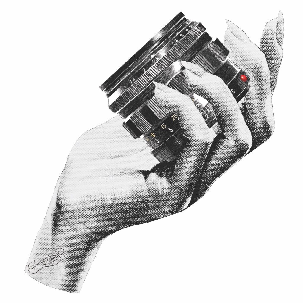 ลายที่ 3 เป็น “ภาพลายเส้นมือที่กำลังถือเลนส์กล้อง” ใช้ลักษณะการจับหรือโพสเจอร์ของมือเข้ามาเป็นส่วนหลักของลาย สื่อถึงความรู้สึกของการได้สัมผัสเลนส์แบบเต็มอุ้งมืออย่างทะนุถนอม ถือเป็นลายเสื้อที่ไม่ว่าจะเป็นช่างภาพคนไหนก็สามารถเข้าถึงได้ทุกคน