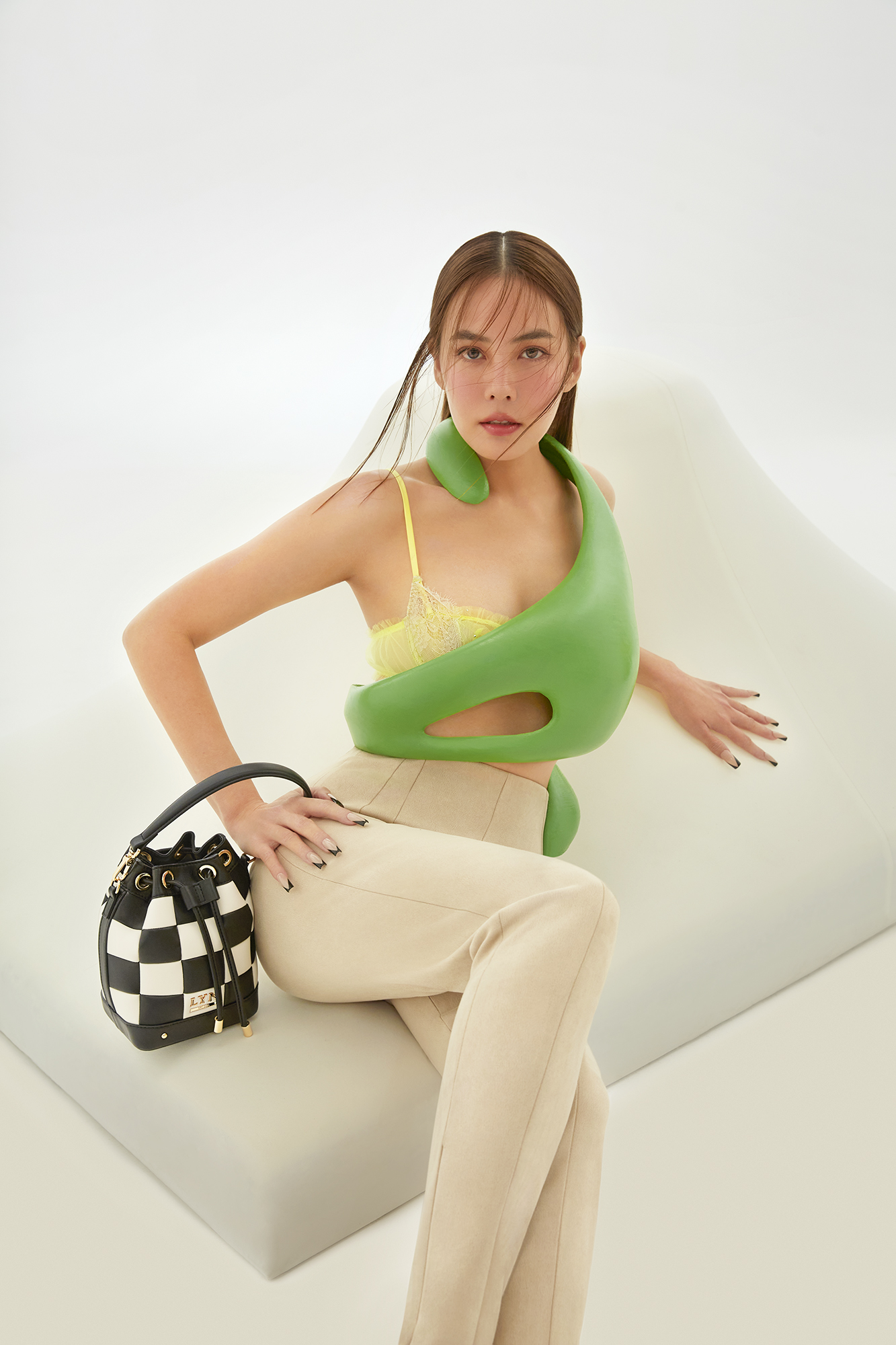 ความโดดเด่นในคอลเลคชันนี้คือการใช้พาเลตต์สีแบบโมโนโครมที่น่าดึงดูด โดยการเล่นสีขาวสลับดำมาสร้างเป็นแพทเทิร์นรูปทรงเรขาคณิตบนตัวกระเป๋า ไม่ว่าจะเป็นลายสามเหลี่ยมหรือลายหมากรุกที่มีความคอนทราสต์ เปรียบดังตัวตนที่แตกต่างกันของหญิงสาวในแต่ละบทบาทและสถานการณ์ที่เธอต้องเผชิญ ก่อนเติมความแกลมด้วยฮาร์ดแวร์สีทองขึ้นเงาหรูหราทั้งตัวซิปและสายสะพาย
