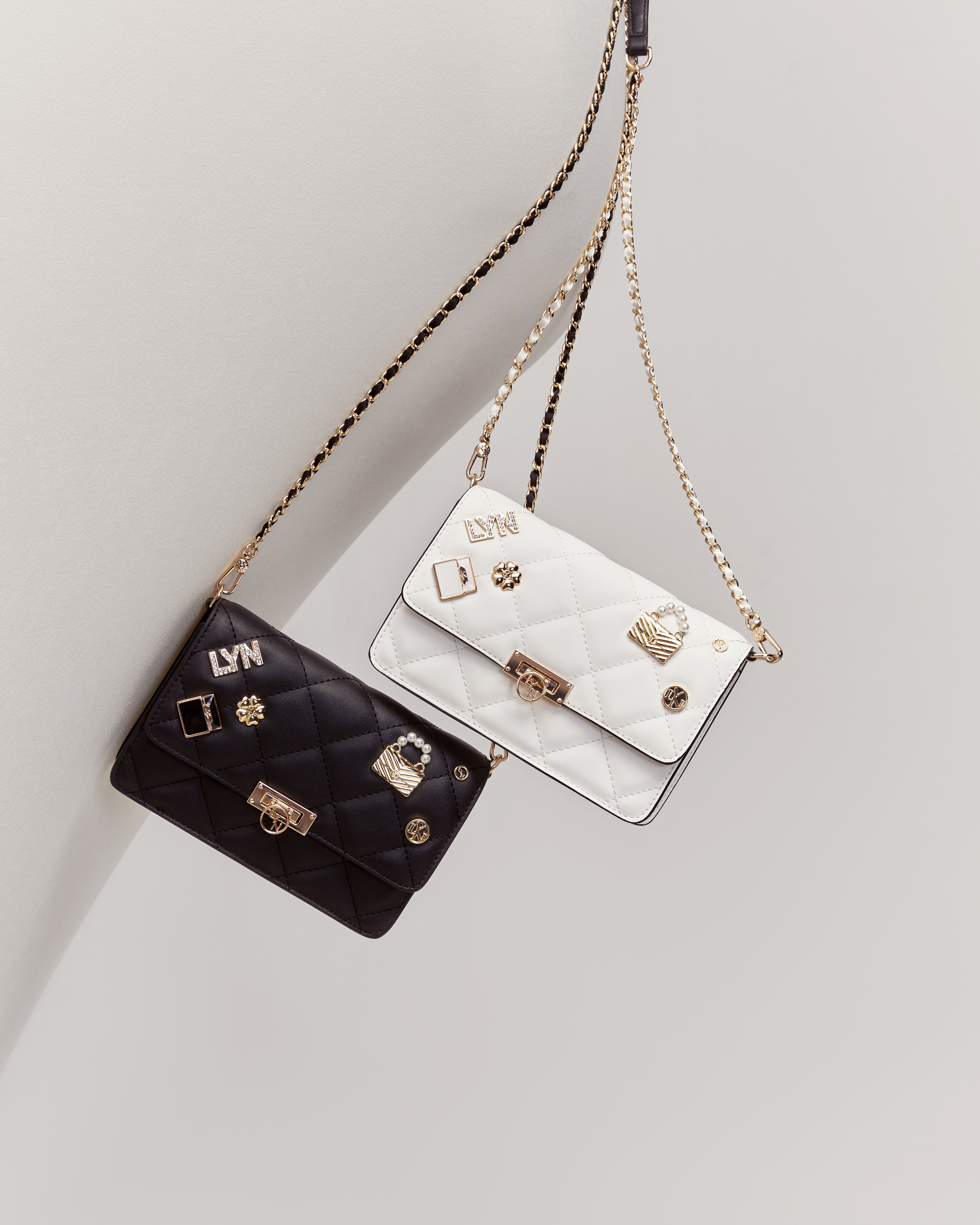 นอกจากนี้ LYN ยังนำเสนอตัวเลือกสำหรับสาวๆในวันที่ต้องการความคล่องตัวกับกระเป๋าที่มีขนาดเล็ก กระทัดรัด อย่างกระเป๋าสีดำรุ่น Mono Tecca ที่มาในดีไซน์ควิลท์สีทองปักลายโลโก้ดูคลาสสิค ก่อนเพิ่มความแกลมด้วยสายโซ่ทอง มาทั้งในแบบกระเป๋าสะพายพับหน้าขนาดเล็กและกระเป๋าใส่โทรศัพท์ และยังมีกระเป๋าสีขาวมุกรุ่น Mono Symone ที่พร้อมเติมความหวานระคนเซ็กซี่ให้กับสาวๆ ทั้งในวันสบายๆกับลุคแคชชวลและในวันสำคัญ ด้วยหมุดตกแต่งในโมทีฟต่าง ๆ
