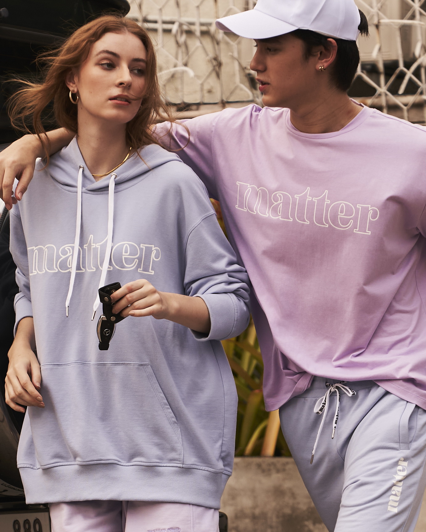 การผสมผสานลุคสบายๆ แบบอยู่บ้าน เข้ากับสตรีทแวร์ที่หนุ่มสาวสามารถหยิบใส่เข้ากับชิ้นโปรดในตู้เสื้อผ้าได้อย่างไม่เคอะเขิน ด้วย เสื้อฮู้ดดี้ , เสื้อสเวตเตอร์ , เสื้อยืด ซิกเนเจอร์ สกรีนคำว่า Matter, กางเกงผ้าเฟรนช์เทอร์รีย์ขาสั้น ประดับโลโก้ของแบรนด์ที่กระเป๋าด้านหลัง, กางเกงแทรคแพนท์ ดีไซน์ขาปล่อย และ จ็อกเกอร์ แพ้นท์ ขาจั๊ม เพิ่มความน่าสนใจด้วยโลโก้แบรนด์ตรงกระเป๋าหน้าด้านซ้าย โดยทั้งหมดมีให้เลือก 3 เฉดสี ได้แก่ สีฟ้า, สีม่วงลาเวนเดอร์ และสีน้ำตาลคาราเมล มีให้เลือก 5 ไซส์ ตั้งแต่ XXS, XS, S, M และ L สามารถใส่ได้ทั้งผู้หญิงและผู้ชาย