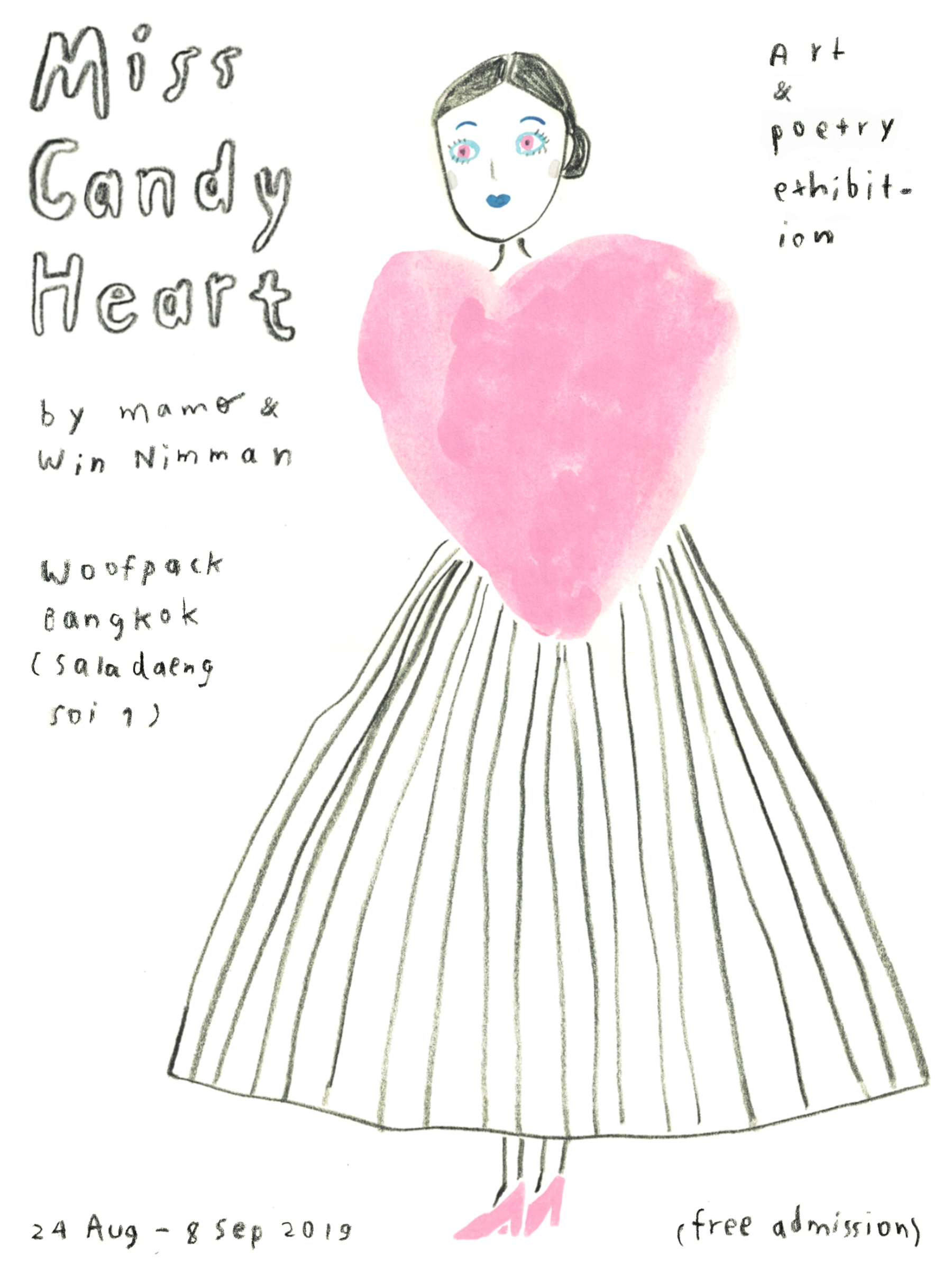 Miss Candy Heart นิทรรศการที่จะจัดร่วมกันระหว่างศิลปินสองคนคือ Win Nimman (วิน นิมมานวรวุฒิ) นักเขียน และนักร้อง–นักแต่งเพลง และ mamo (วรมา อำไพรัตน์) ศิลปินและนักวาดภาพประกอบ ที่มีคอนเซ็ปต์หลักคือการเล่าเรื่องเกี่ยวกับผู้หญิงและการให้กำลังใจผู้หญิง ผ่านบทกวีและงานศิลปะ (women’s empowerment through arts)