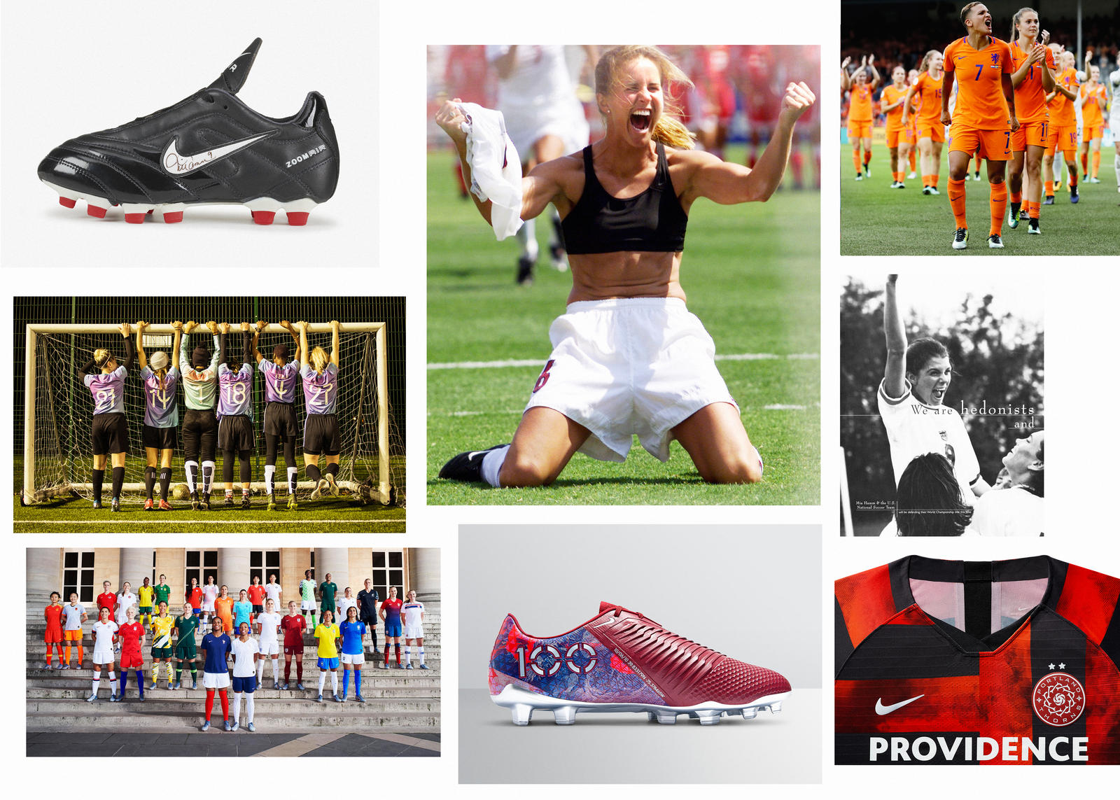 นักฟุตบอลหญิงเหล่านี้กำลังพัฒนาฝีเท้าไปอย่างไม่หยุดยั้งในการแข่งขันทั้งระดับอาชีพและระดับชาติ เริ่มจากนักฟุตบอลหญิงฝีเท้าดีคนเดียว ปัจจุบันนักฟุตบอลหญิงที่ไนกี้ให้การสนับสนุนมีจำนวนเพิ่มขึ้นอย่างมาก และพวกเธอจะสร้างแรงบันดาลใจให้กับนักฟุตบอลหญิงรุ่นใหม่ๆ อย่างแน่นอน