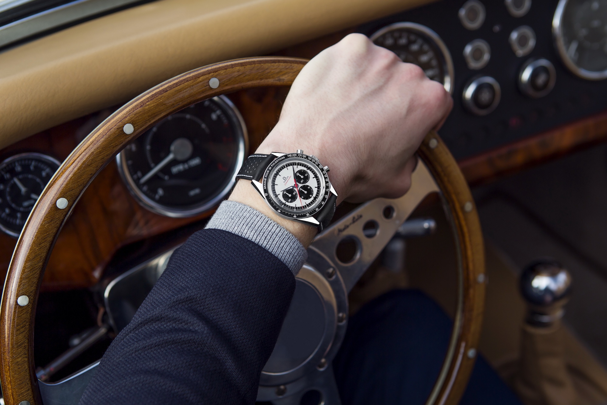 จาก ”ก้าวแรกสู่อวกาศ” สู่ความคลาสสิคโฉมใหม่บนตัวเรือนสแตนเลส สตีลขนาด 39.7 มิลลิเมตร จับคู่พื้นหน้าปัดสีเงิน ที่มาพร้อมกับโทนสีดำลึกลับของ 3 หน้าปัดย่อยและตัวติดตามเวลา (Minutes Track) โดดเด่นด้วยขอบตัวเรือนเซรามิกขัดเงาสีเดียวกันที่ออกแบบให้รับกับ สเกลพัลโซมิเตอร์ (Pulsometer Scale) เคลือบ