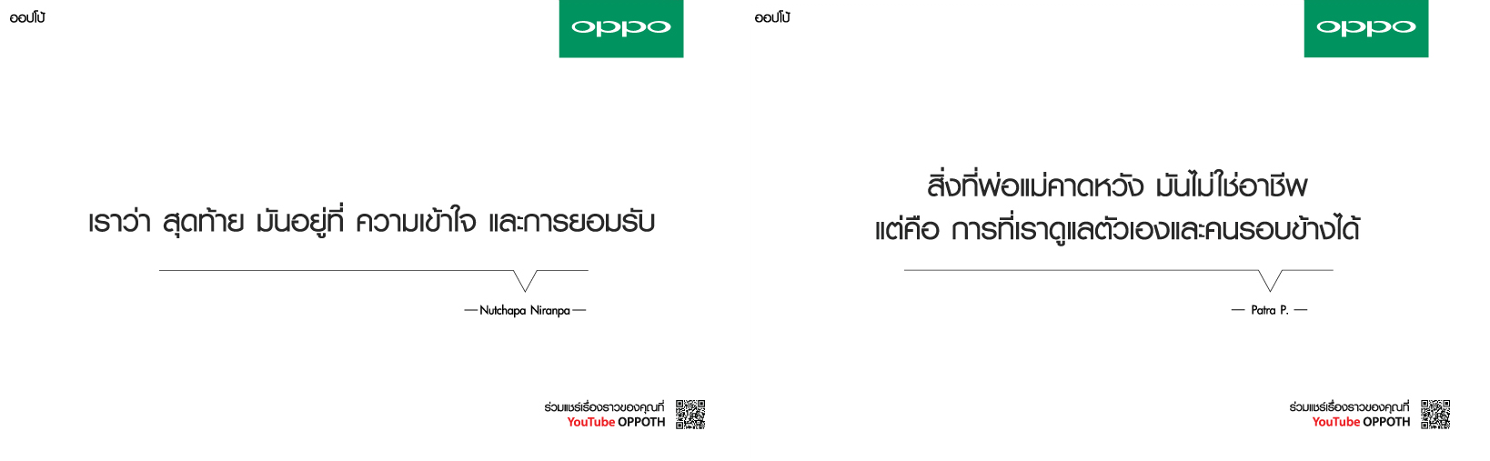 “OPPO สนับสนุนให้ทุกคนใช้ช่วงเวลาสงกรานต์นี้ เปิดใจ และ ปรับความเข้าใจกับคนที่คุณรัก และพร้อมเป็นกำลังใจให้ทุกคน ทุกอาชีพเสมอ”