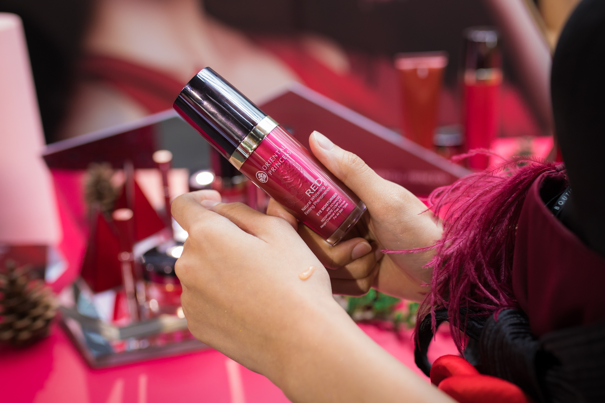 ผลิตภัณฑ์บำรุงผิวพรีเมี่ยมสูตรใหม่ โอเรียนทอล พริ้นเซส เร้ด เนเชอรัล ไวท์เทนนิ่ง แอนด์ เฟิร์มมิ่ง ฟีโนมีนอล (Oriental Princess RED Natural Whitening & Firming Phenomenon) ใช้นวัตกรรมสารสกัดธรรมชาติลิขสิทธิ์เฉพาะจากประเทศญี่ปุ่น Advanced Redsphere Complex™ ที่โดดเด่นด้วยคุณสมบัติของ โกลด์ คอลลอย โคยามากิ (Gold Colloid Koyamaki pine) สารสกัดจากสนญี่ปุ่นในรูปแบบโมเลกุลขนาดเล็ก ที่มีส่วนช่วยให้ผลิตภัณฑ์ซึมเข้าสู่ผิวได้ง่าย และล้ำลึกเสมือนมีสื่อไฟฟ้านำพา ผสานกับ Rosa Hybrid Flower Complex นวัตกรรม 5 คุณค่าสารสกัดเข้มข้นจากดอกกุหลาบสายพันธุ์ตะวันออก ที่ช่วยสกัดกั้นการเกิดความหมองคล้ำ และ ต่อต้านการเกิดอนุมูลอิสระได้มากกว่าไลโคปีนถึง 2.5 เท่า ยิ่งไปกว่านั้น Oriental Princess RED Natural Whitening & Firming Phenomenon ยังเป็นสูตรที่ปราศจากการใช้สารเคมี ที่อาจก่อให้เกิดอาการแพ้ หรืออาการระคายเคืองต่อผิว ภายใต้คอนเซ็ปต์ Allergen Chemical Free Formula ช่วยให้ผิวได้รับการบำรุงอย่างอ่อนโยน