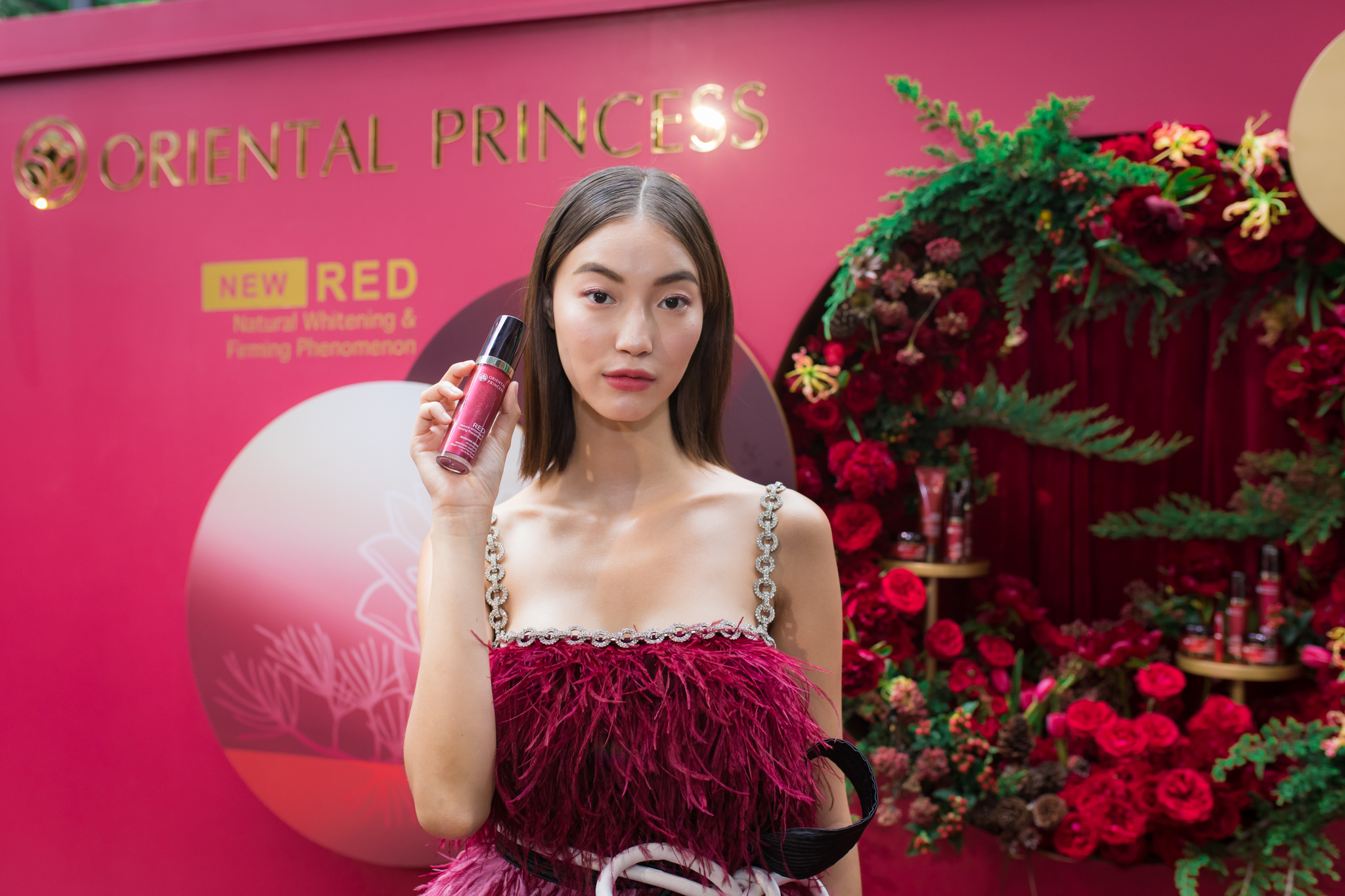 งานนี้ยังได้นักแสดงและนางแบบสาวหน้าหมวยสุดฮอต จิงจิง วริศรา ยู มาเป็นพรีเซ็นเตอร์ของ Oriental Princess RED Natural Whitening & Firming Phenomenon #สวยจิกกระจกแตก ให้สาวๆ กลับมามั่นใจในความสวยปัง กล้าที่จะกลับมาส่องกระจกอีกครั้ง นอกจากนี้ยังมี โอเรียนทอล พริ้นเซส บิวตี้ อินเทลลิเจนซ์ (Oriental Princess Beauty Intelligence) โปรแกรมตรวจสภาพผิวหน้าออนไลน์ พร้อมเลือกใช้ผลิตภัณฑ์ดูแลผิวหน้าที่ตอบโจทย์
