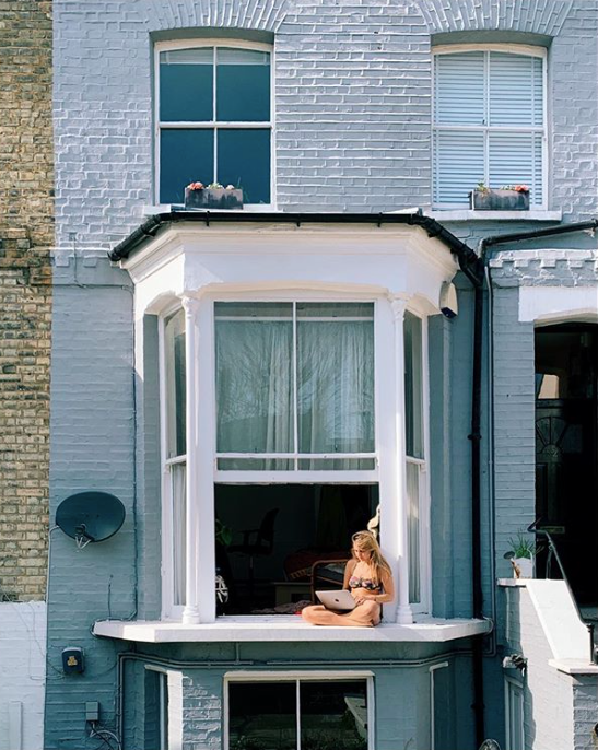 ระหว่างนั้น เธอจึงขอเก็บภาพชาวลอนดอนที่ถึงแม้ว่ายังคงต้องอยู่แต่ในบ้านตามมาตรการ Social Distancing ระหว่างปิดเมือง ไม่สามารถออกไปใช้ชีวิตกลางแจ้งเหมือนทุกๆ ปีได้ แต่ในวันที่แดดสดใสของฤดูร้อนเช่นเวลานี้ ดูเหมือนจะไม่มีใครอดใจไหว ทุกคนพยายามออกมารับแดดภายให้มากที่สุดในพื้นที่ของตัวเอง