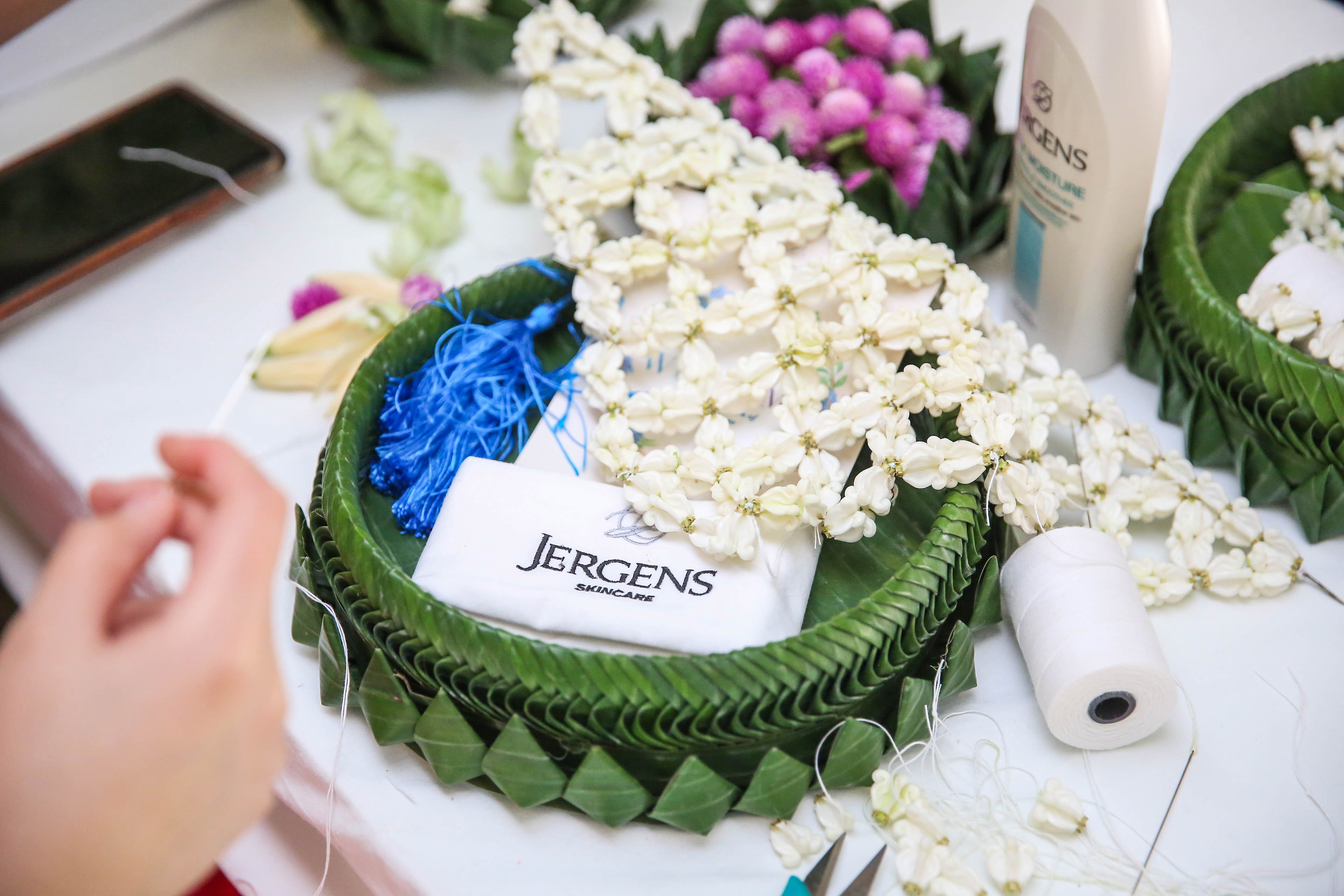 ได้รับความไว้วางใจจากสาว ๆ ทั่วโลกมาเป็นเวลากว่าร้อยปี ด้วยประสิทธิภาพในการเติมเต็มความชุ่มชื้นให้แก่ผิว ช่วยให้ผิวสวยสุขภาพดี เรียบเนียน และดูสว่างใสกว่าที่เคย โดยมีผลิตภัณฑ์ยอดนิยมอย่าง เจอร์เกนส์® เดลี่ มอยส์เจอร์ ดราย สกิน มอยส์เจอไรเซอร์ (Jergens® Daily Moisture Dry Skin Moisturiser) ที่มีส่วนผสมหลักจากซิลค์ โปรตีน (Silk Proteins) ให้ความรู้สึกผิวนุ่มละมุนเรียบเนียนดุจแพรไหม และเทคโนโลยีเพื่อผิวดูสว่างใสไฮดราลูเซนซ์ (illuminating Hydralucence Technology) ซึ่งกิจกรรมในครั้งนี้ผู้ร่วมเวิร์กช็อปจะได้เรียนรู้การสร้างสรรค์ดอกไม้สดแบบดั้งเดิมของไทย โดยนำดอกไม้สดของไทย และ