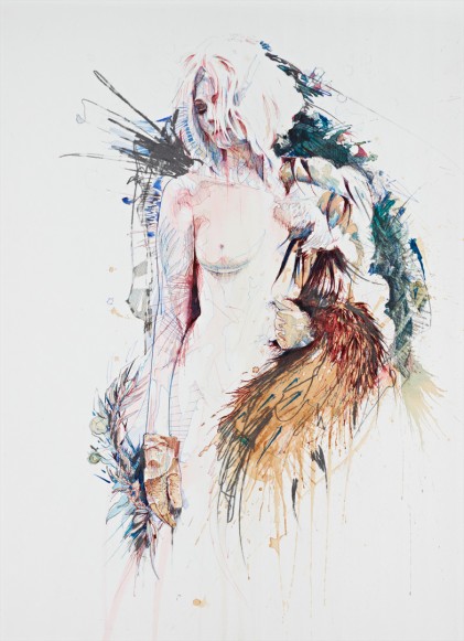 ภาพแฟชั่นเซ็ทสวยๆ จากนิตยสาร Hunger ของเกาะอังกฤษ นี่ไม่ใช่การโชว์เสื้อผ้าสวยๆ เพียงอย่างเดียว แต่เป็นการผสมงานอาร์ตเวิร์คเท่ๆของ Carne Griffiths ศิลปินชาวอังกฤษที่ใช้น้ำหมึกสำหรับคัดลายมือ ดินสอแกรไฟต์ รวมถึงของแปลกๆอย่างน้ำชา ว็อดก้า หรือวิสกี้ในการเขียนภาพ ภาพบางภาพของเขาสามารถขายได้ถึง 950 ปอนด์ หรือราวๆ 50,000 บาทต่อรูปเลยทีเดียว บอกได้เลยว่า Sketchbook ของเขาน่าสนใจมากๆ สามารถดูผลงานของเขาเพิ่มเติมได้ที่ http://www.carnegriffiths.com/