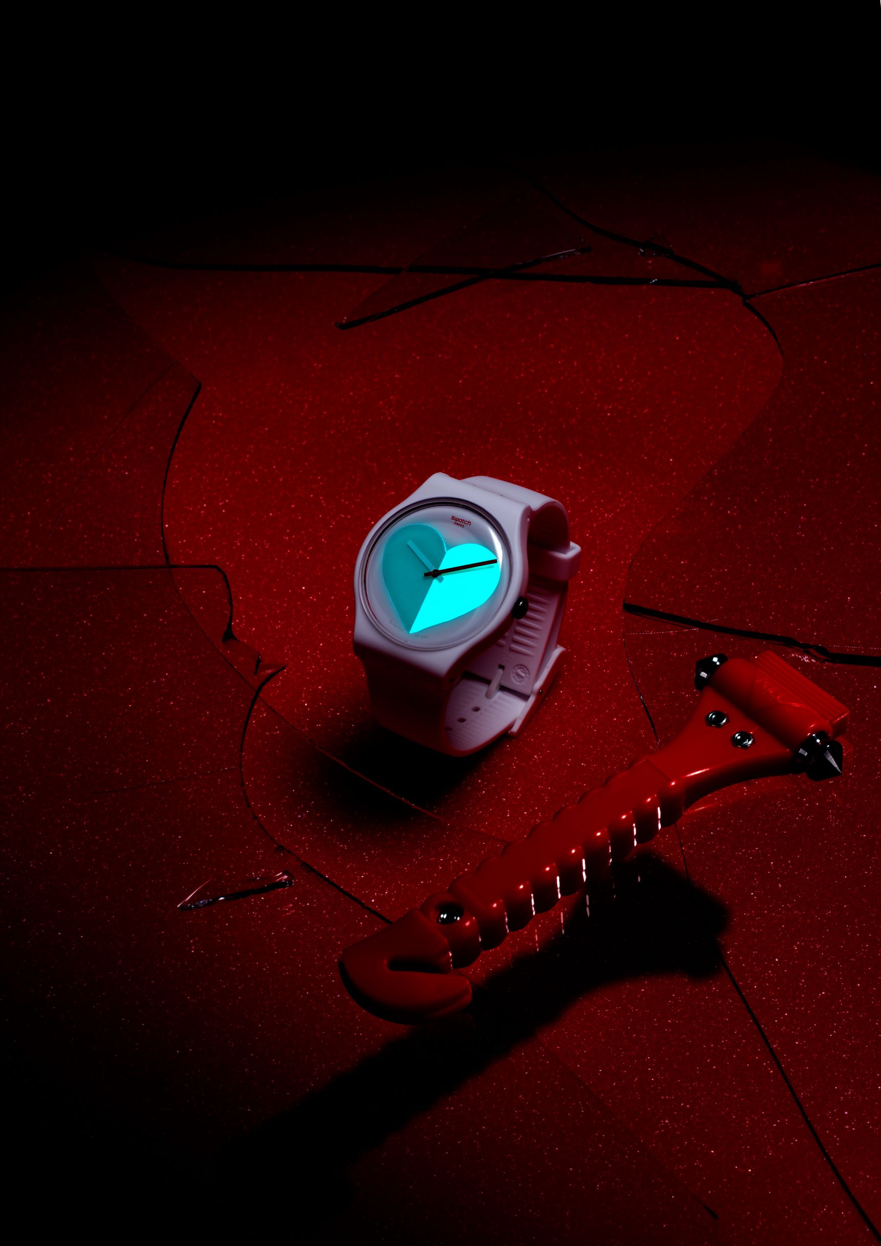 รูปหัวใจถือเป็นหัวใจสำคัญของนาฬิกาคอลเลคชั่นวาเลนไทน์สุดพิเศษทั้งสามรุ่น โดยบริเวณหน้าปัดของรุ่น HALF <3 WHITE และ HALF <3 RED ที่มาในโมเดล New Gent หน้าปัด 41 มม. ถูกประดับด้วยรูปหัวใจที่แบ่งครึ่งเป็นสีแดงและสีขาว โดยที่หัวใจฝั่งสีขาวจะสามารถเรืองแสงในที่มืดได้ และเมื่อประกบคู่กันสองเรือน หัวใจครึ่งซีกทั้งสองจะถูกรวมเป็นหัวใจเรืองแสงเต็มดวง เพื่อสื่อถึงหัวใจสองดวงที่เต้นในจังหวะเดียวกัน ตัวเรือนและบัคเคิลยังทำมาจากวัสดุรักษ์โลกอย่างไบโอซอร์สพลาสติกอีกด้วย
