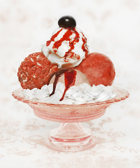 เมื่อของหวานสุดโปรดของคุณ กลายมาเป็นอาหารอันโอชะของเจ้าสุนัขตัวน้อย โปรเจคภาพถ่ายของหวานสุดน่ากิน โดยช่างภาพสาวชาวออสเตรียนามว่า Jasmine Schuller ผลงานส่วนใหญ่ของเธอเป็นในเชิงเสียดสี มาคราวนี้เธอเบนความสนใจไปในเรื่องของอาหารที่เธอชื่นชอบ เป็นแรงบันดาลใจในการสร้างสรรค์ผลงาน ด้วยความที่เธอชอบกินของหวานมาก และยังโปรดปรานกับเนื้อเสต็ก จะทำยังไงที่เธอจะรวมทั้งสองอย่างเข้าด้วยกัน เลยเกิดเป็นภาพถ่ายของหวานสีสวยงาม ดูน่ารับประทาน แต่มันอาจจะไม่ได้รสชาติหวานอย่างที่คุณคิด เพราะส่วนประกอบที่เธอใช้ในโปรเจคนี้มาจาก เนื้อหมูบดจำนวนมาก เนื้อวัวสด 5 กิโลกรัม, เลือดหมู 2 ลิตร, ไขมันสัตว์ 2 ถัง และผ่านกระบวนการสร้างสรรค์และแรงกดชัตเตอร์ของเธอ พร้อมกับคำอธิบายเชิญชวน ที่ไม่ว่าใครก็อยากจะลิ้มลองมันอย่างแน่นอน เธอทิ้งท้ายไว้ว่า “หลังจากที่ฉันทำโปรเจคนี้เสร็จ สตูดิโอแห่งนี้ก็จะกลายเป็นปาร์ตี้สุดอลังการณ์ของสุนัขของฉันทันที”
