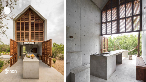 Casa Tiny บ้านทรงกระต๊อบทรงสูงที่ทำจากคอนกรีต ตั้งอย่างโดดเด่นอยู่กลางสวนผักไม่ไกลจากชายฝั่งทะเล ที่ Puerto Escondido เมืองโต้คลื่น บนชายฝั่ง Oaxacan