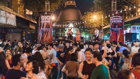 ขอเชิญทุกคนเตรียมชุดวินเทจ ผูกหูกระต่าย ทัดดอกไม้บนผม ใส่รองเท้าผ้าใบ แล้วไปงานเต้นสวิง 'Big Bang: Swing Dancing at Phra Pathom Chedi' ที่ปิดถนนรถไฟหน้าองค์พระปฐมเจดีย์ เปลี่ยนถนนให้เป็นงานเต้นรำย้อนยุคหนึ่งคืน