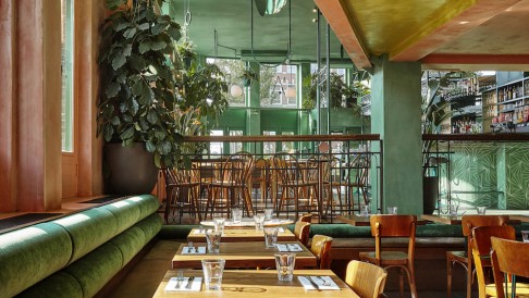 เราก็มักที่จะสอดสายตาค้นหาร้านน่านั่งใหม่ๆ ที่เด่นสะดุดตามาตั้งแต่ทางเข้า แม้ว่า Bar Botanique ทางตะวันออกของกรุง Amsterdam นั้นจะมีพิกัดอยู่ในตึกโครงสร้างอิฐสีน้ำตาลแดง แต่การแทรกแซมหน้าต่างบานกระจกสีเขียวนั้น ช่างตัดกันได้ดีงามจนทำให้เราอยากเข้าไปข้างใน