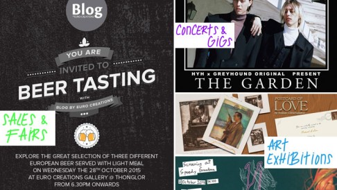 ตารางกิจกรรมที่เกิดขึ้นระหว่างวันที่ 01 - 08 October 2015 / Beer Tasting by Blog by Euro Creations / Postcard of Love by Kraisak Chirachaisakul / HUU screening and live performance by Nomonument / HYH x Greyhound Original present The Garden Live!
