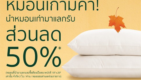 พลาดไม่ได้กับโปรโมชั่นจาก SANTAS กับรายการ “หมอนเก่ามาแลกส่วนลด 50%” โดยการนำหมอนเก่ายี่ห้อใดก็ได้มาแลกซื้อหมอนใบใหม่จาก Santas ได้ในราคาลด 50% ให้คุณได้นอนหลับฝันดีแบบคลีนๆ กันนะคะ