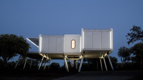 ส่วนกลางคือห้องครัวและห้องน้ำ นั้นเปรียบเสมือนสะพานเดินเรือ เพราะแผงควบคุมที่ได้แรงบันดาลใจมาจาก Star wars ตั้งอยู่ในส่วนนี้ ผู้อยู่อาศัยสามารถสั่งการทุกอย่างในบ้านได้ทั้งหมด