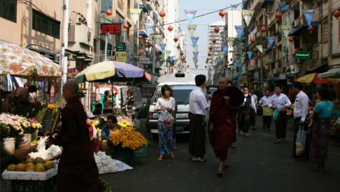 ได้มาเที่ยวต่างแดนทั้งที เรากับแฟนเลยขอทำตัวเป็นนักท่องเที่ยวให้เต็มที่ เตรียมกล้องให้พร้อมแล้วออกเดินชมเมืองแต่เช้า ช่วงเช้าบรรยากาศย่าน Chinatown คึกคักมาก มีพระพม่าหลายองค์เดินขบวนออกมาบิณฑบาต