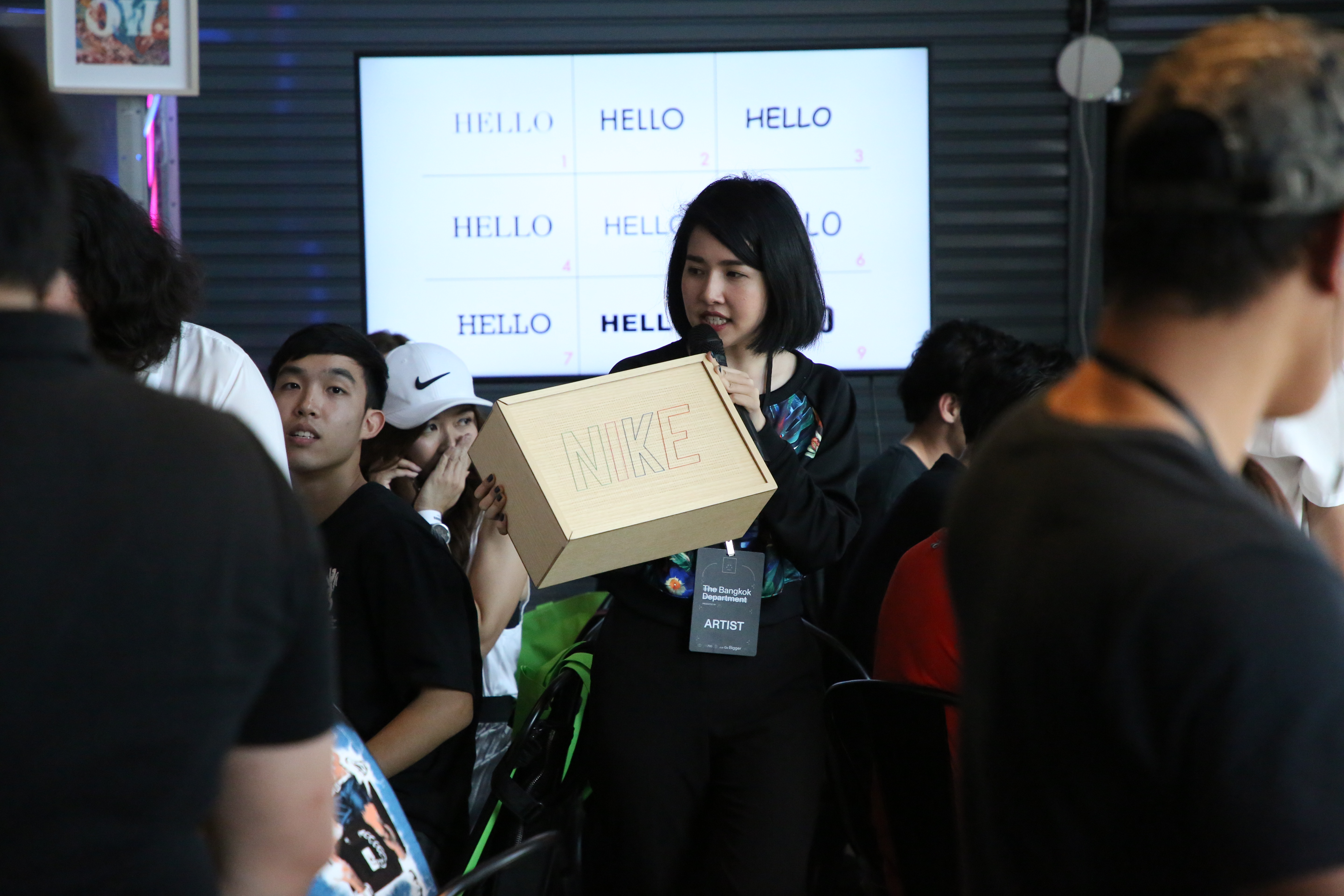 เชิงสร้างสรรค์ที่มีความแตกต่างกันออกไป ไม่ว่าจะเป็น Color Design Workshop โดย “ซัน Smileclub” เมธัส เทพนวล นักออกแบบทรงผมชื่อดังของ SMILE CLUB HAIR DINER ผู้ที่มีความคิดสดใหม่และไม่มีใครเหมือน อีกทั้งยังมีชื่อเสียงด้านการย้อมผมที่มีสีสันแปลกใหม่ โดยในครั้งนี้เขาได้นำเสนอเทคนิคการจับคู่สีสันให้เหมาะสมและมีมิติลงบนถุงเท้าไนกี้ ให้ผู้เข้าร่วมเวิร์กชอปได้กลับบ้านไปพร้อมถุงเท้าคู่โปรดคู่ใหม่อันเป็นสีสันที่คุณเลือกเองได้ Materials Exploration Workshop โดย “เบสท์” ปฏิพัทธ์ ชัยภักดี ผู้อำนวยการด้านความคิดสร้างสรรค์ของแบรนด์ Dry Clean Only แบรนด์ที่พลิกโฉมเสื้อยืดตัวเก่าให้เป็นกลายเป็นชิ้นงานสุดล้ำค่าในครั้งนี้เขาจะมาระเบิดจินตนาการงานอาร์ตผ่านการจับคู่วัสดุหลากหลายชนิด โดยมีแจ็คเก็ตยีนส์เป็นเสมือนผืนผ้าใบสำหรับการระบายความคิดที่ได้รับแรงบันดาลใจจาก Nike Air Max 720
