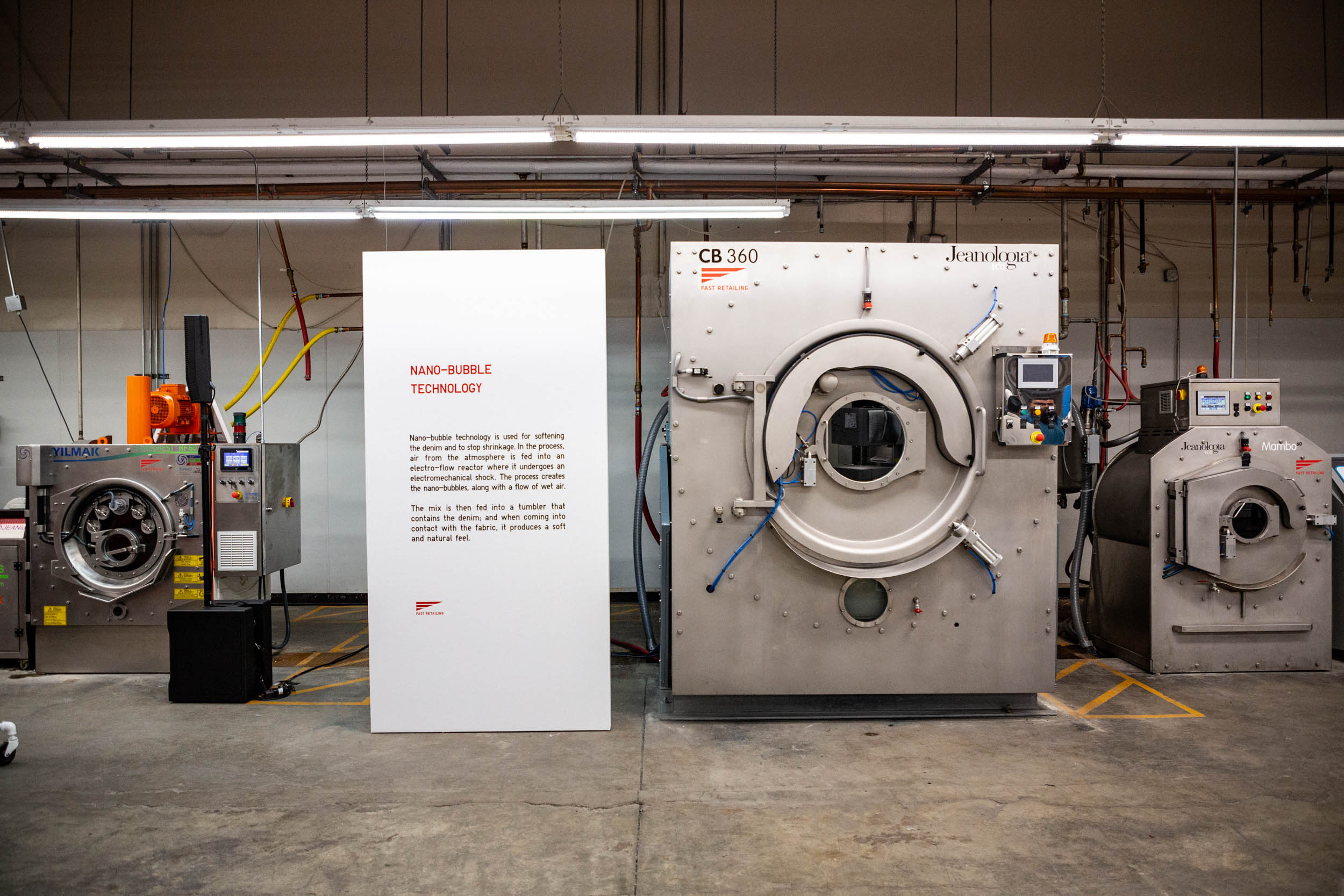 The Fast Retailing Jeans Innovation Center ก่อตั้งขึ้นในปี 2559 ให้เป็นศูนย์วิจัยและพัฒนาเพื่อพลิกโฉมคุณค่าของยีนส์ซึ่งแบรนด์ในเครือฟาสต์ รีเทลลิ่งแต่ละแบรนด์นำเสนอสู่ลูกค้า โดยมีภารกิจในการสร้างมาตรฐานใหม่ให้แก่ผลิตภัณฑ์ยีนส์ ทั้งในด้านการออกแบบและมูลค่า ตลอดจนความคาดหวังของตลาด ซึ่งกระบวนการฟอกที่แทบจะไม่ต้องใช้น้ำเลยนี้ ถือได้ว่าเป็นหนึ่งในตัวอย่างความสำเร็จตามภารกิจของศูนย์ฯ ที่ยังคงดำเนินไปอย่างต่อเนื่อง เพื่อสร้างสรรค์ความสมบูรณ์แบบให้กับผ้าเดนิม